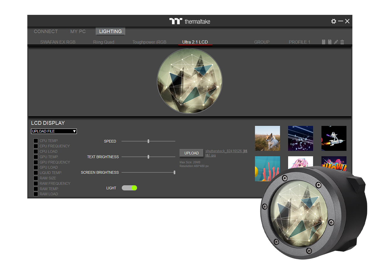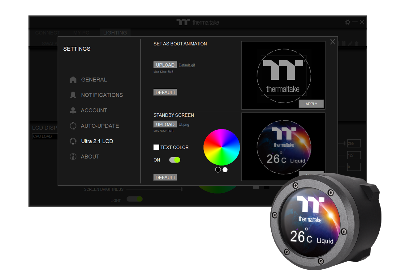 - 2.1-inch LCD pump display capable of showing real-time system data or personalized visuals in 16.8 million colors