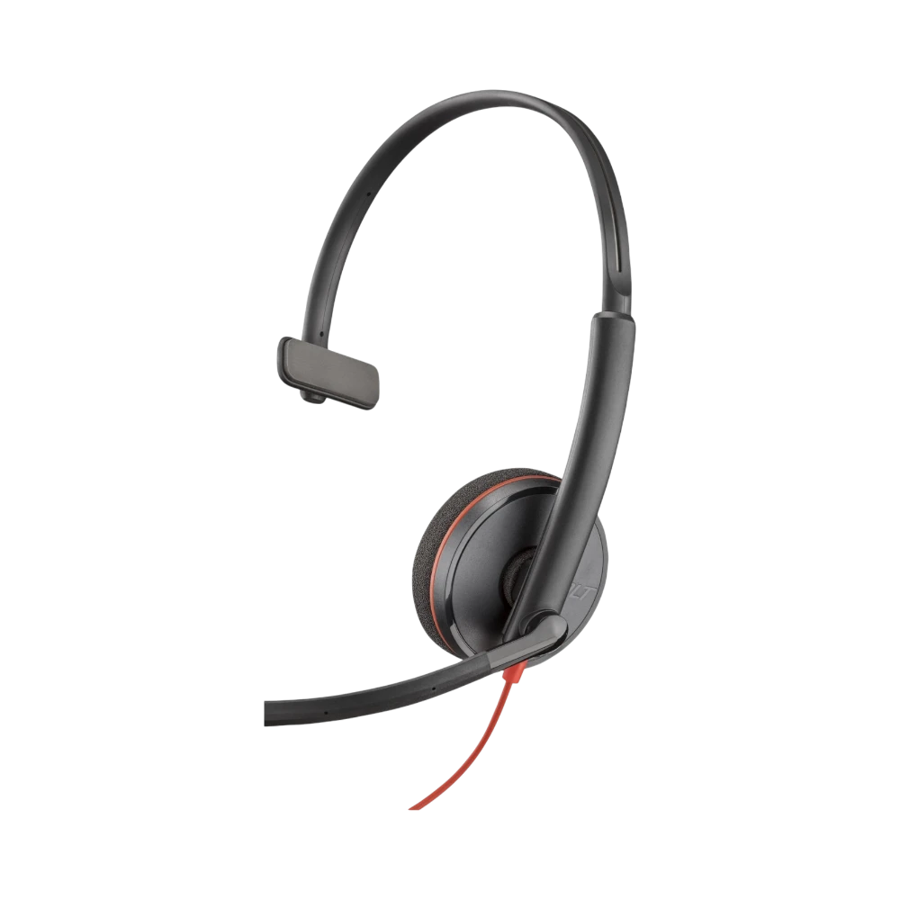 Its single-ear design allows you to stay aware of your surroundings while focusing on conversations, and the lightweight metal headband combined with a soft foam ear cushion ensures comfort during long sessions. When not in use, the ear cup folds flat for convenient storage or travel.