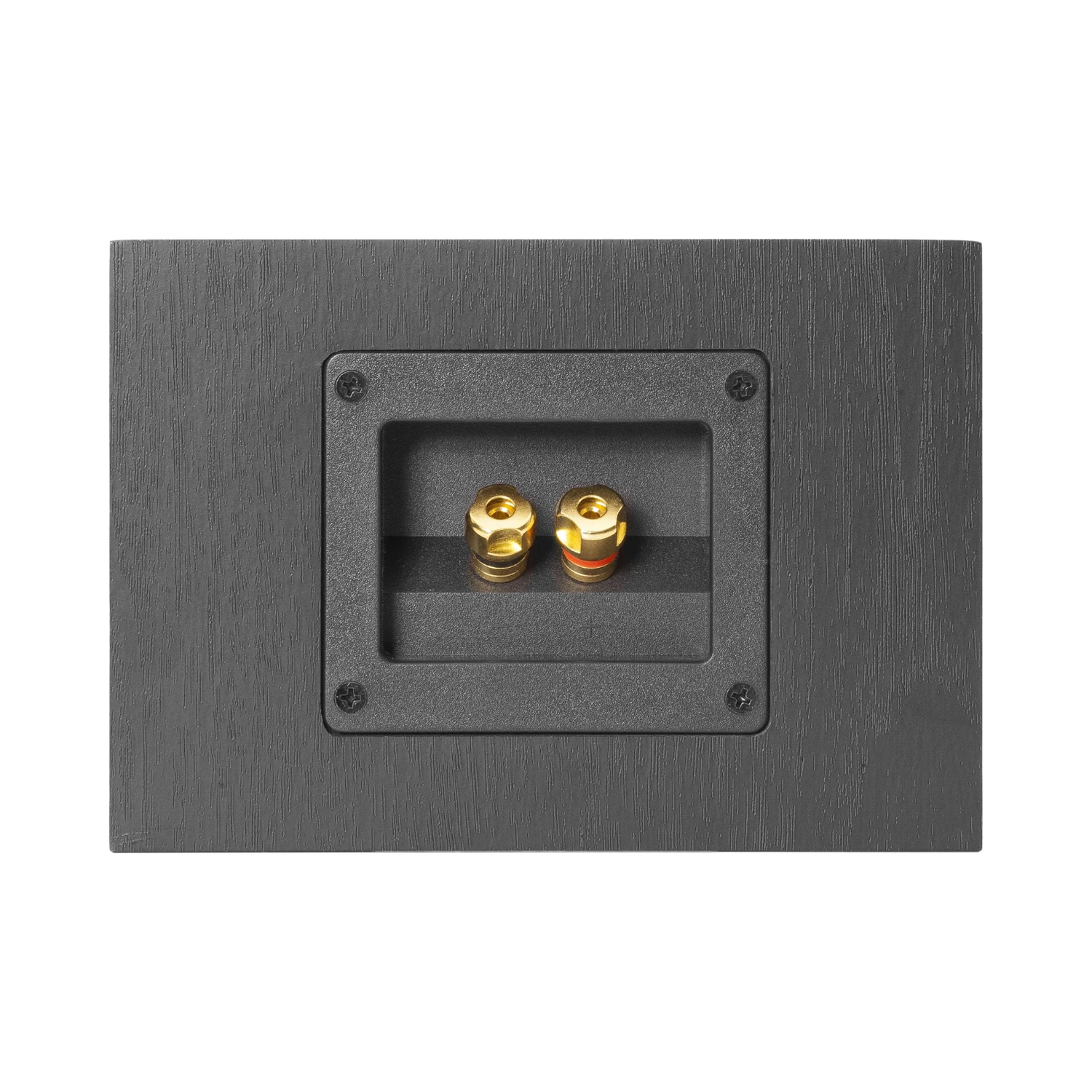 - Five-way binding posts accept bare wire, banana plugs, or spade connectors, offering flexible and secure wiring options.