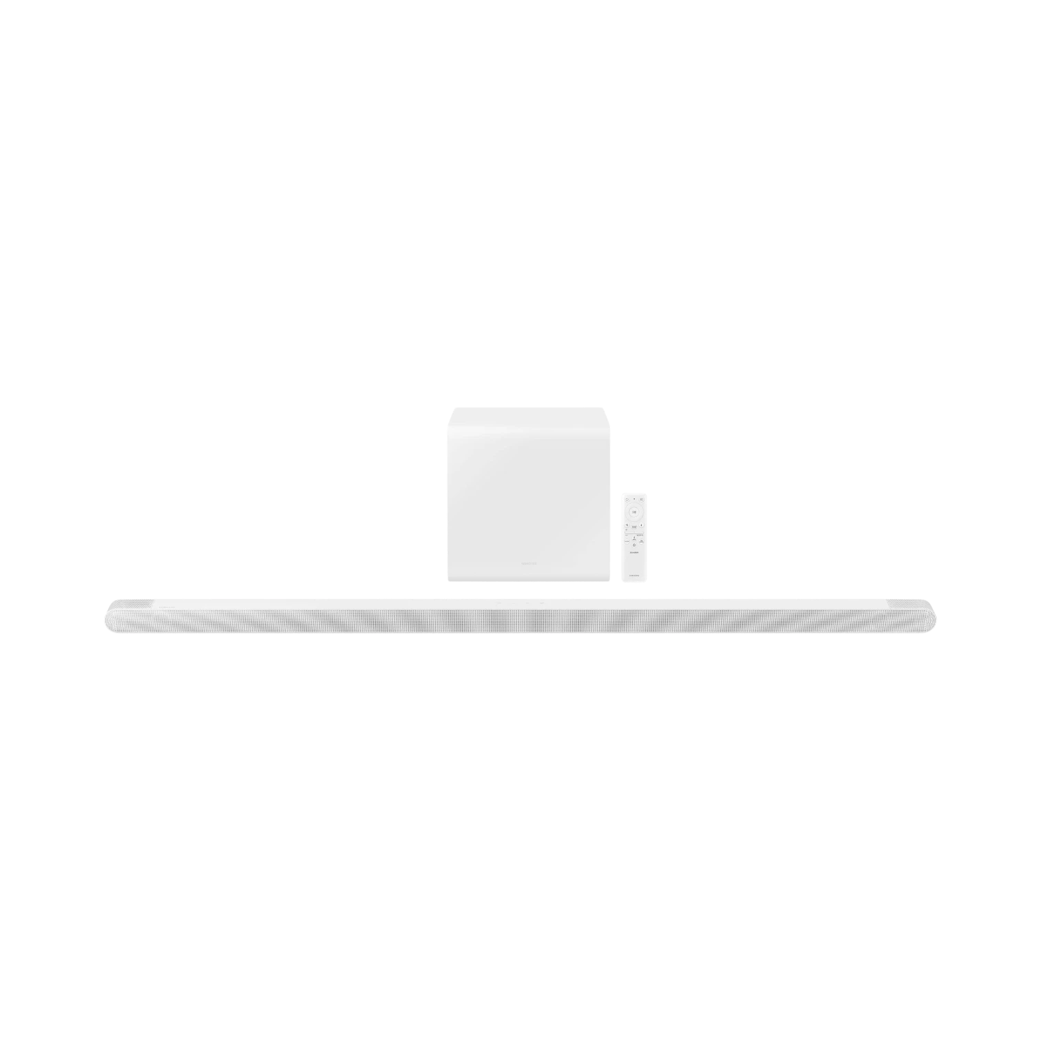 - Q-Symphony synchronizes the soundbar with compatible Samsung TV speakers to expand the soundstage seamlessly.