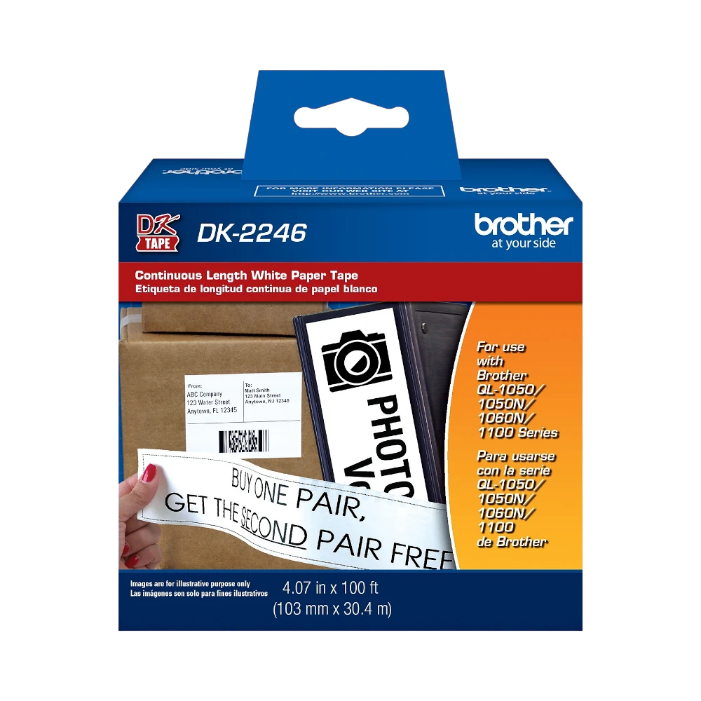 The Brother DK2246 is a continuous length paper label roll designed specifically for Brother QL series label printers. With a printable width of 4.07 inches and a total length of 100 feet, it allows you to create labels tailored precisely to your needs, whether that’s a small address label or a long banner. The black text on a white background ensures that barcodes, text, and graphics are easy to read and scan, making it suitable for a variety of labeling tasks in busy environments.