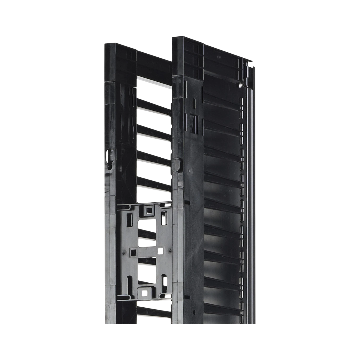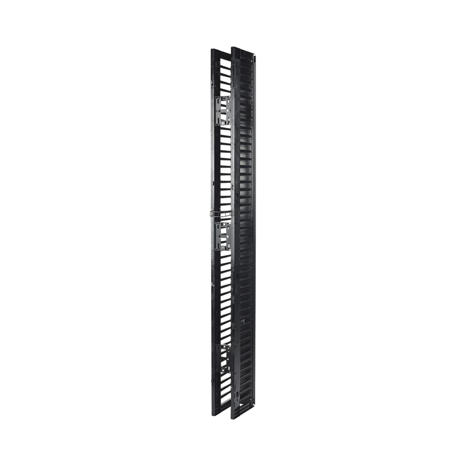 The APC AR8715 is a vertical cable manager designed to organize and protect network, power, and fiber cables in open frame racks. Compatible with both two-post and four-post racks, it offers a flexible solution for new installations or retrofits. Standing 84 inches tall and 6 inches wide, it provides ample space for growing cable bundles while maintaining a neat and secure environment.