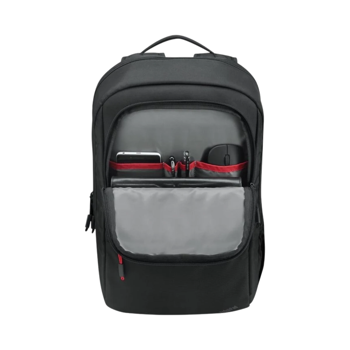 - Classic black exterior with a gray interior lining improves visibility of contents, while subtle red accents reflect Lenovo’s ThinkPad heritage.