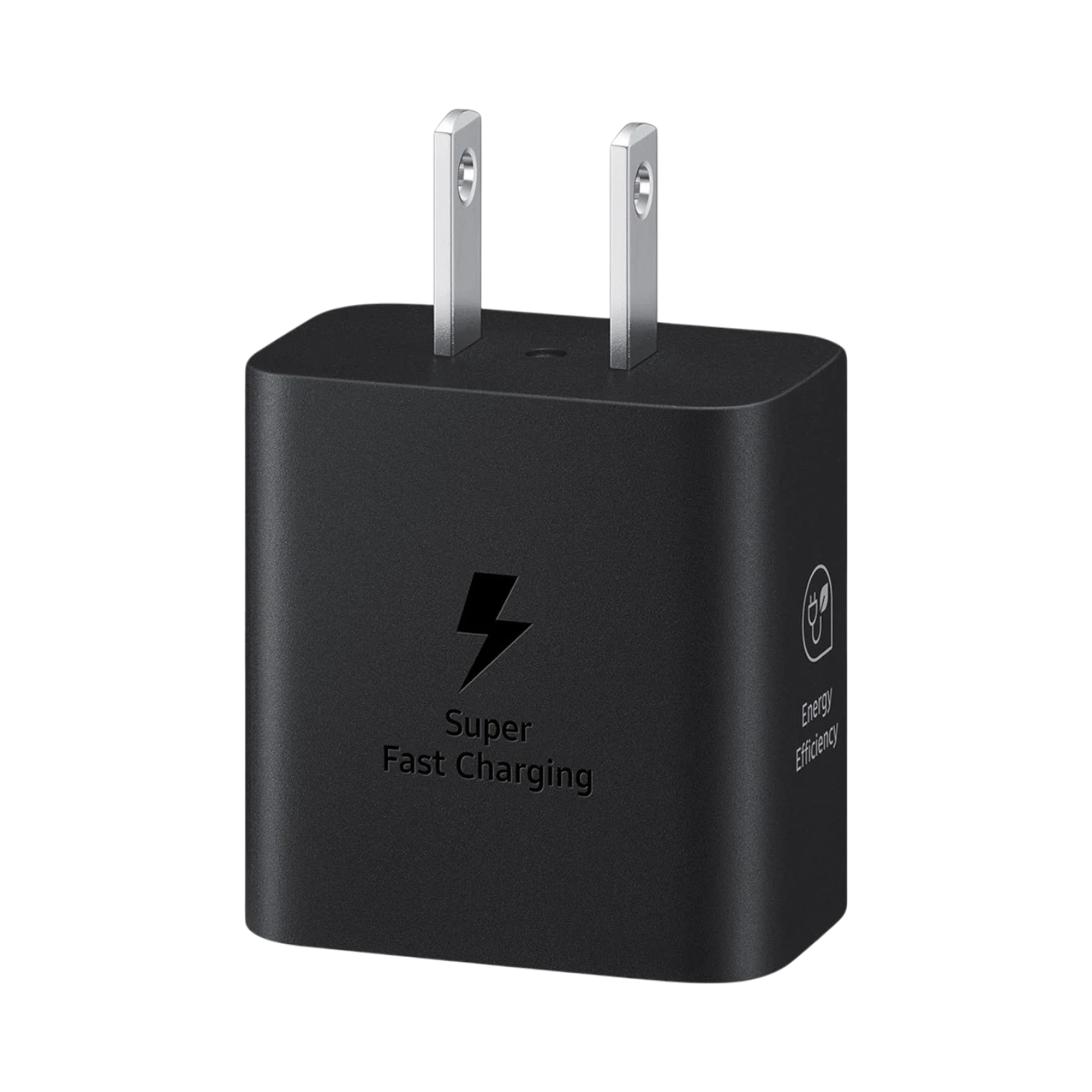 The Samsung EP-T2510XBEGUS is a 25-watt USB-C power adapter designed to deliver Super Fast Charging for compatible Galaxy phones, tablets, and accessories. Utilizing gallium nitride (GaN) technology, it maintains a compact size while providing consistent and efficient power. The included 3.28-foot USB-C to USB-C cable allows immediate use, making it convenient for charging on the go or at home.