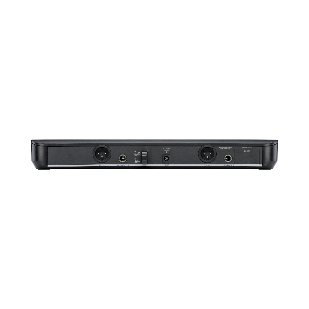 The BLX88 receiver offers versatile output options to integrate seamlessly with a variety of audio setups. Balanced XLR outputs ensure professional-grade connections to mixers and soundboards, while balanced 1/4-inch jacks provide compatibility with powered speakers and recording interfaces. The system’s QuickScan feature helps maintain clear audio even in environments crowded with wireless devices, making it a reliable choice for venues with existing wireless equipment.