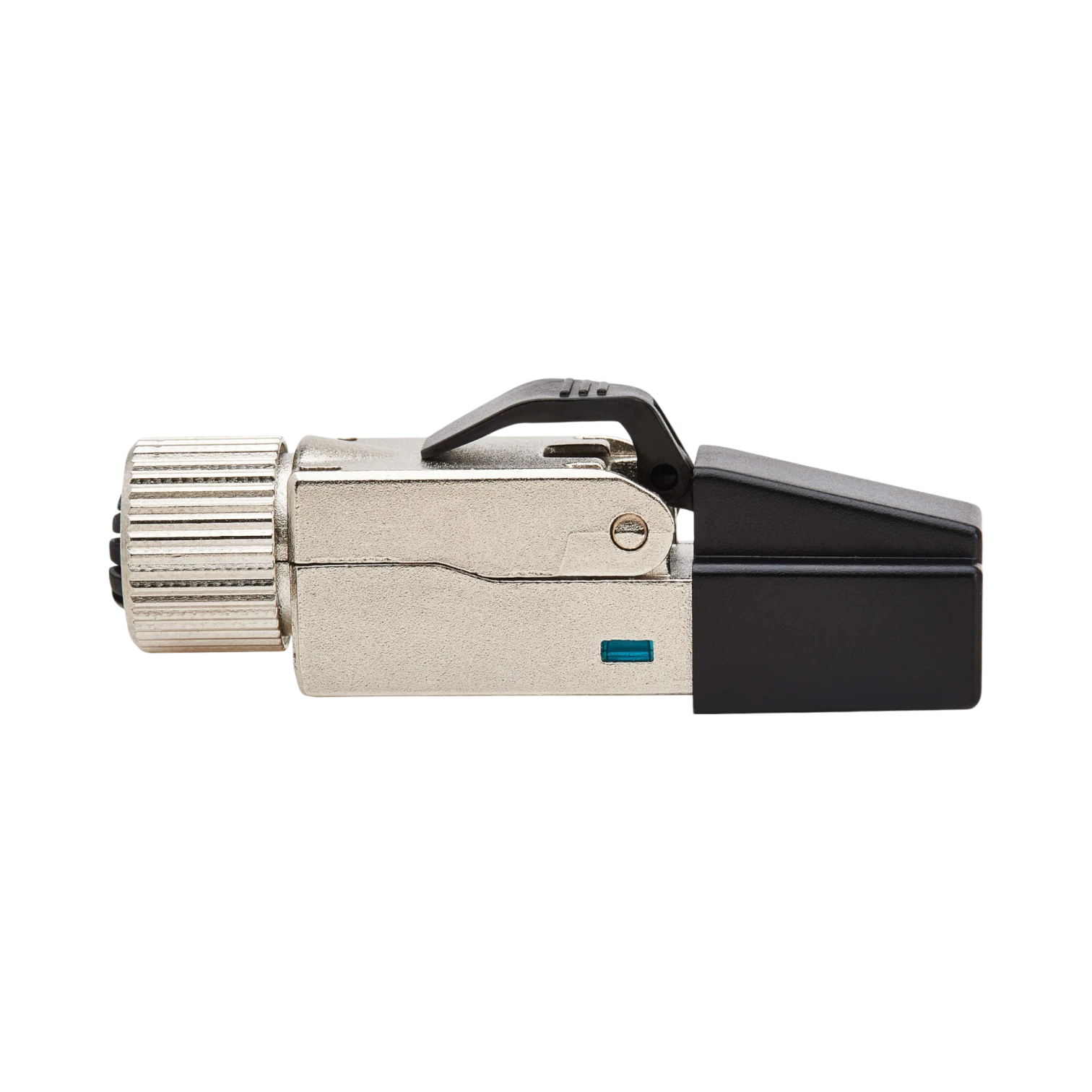 This field-termination plug fits well in environments where flexibility and quick deployment are essential, such as network closets, data centers, and commercial or government installations requiring TAA compliance. It is a strong choice for installers working in spaces where pre-terminated cables are impractical or where on-site customization is necessary. The metal housing’s EMI and RFI shielding make it particularly suitable for dense networking environments where signal integrity is critical.