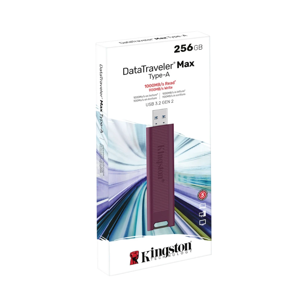 The Kingston DTMAXA/256GB is a USB Type-A flash drive designed for users who need fast and reliable storage on the go. Offering 256GB of capacity, it is ideal for storing large files such as 4K videos, high-resolution photos, and extensive music collections. With USB 3.2 Gen 2 technology, it delivers read speeds up to 1,000 MB/s and write speeds up to 900 MB/s, making file transfers quick and efficient.