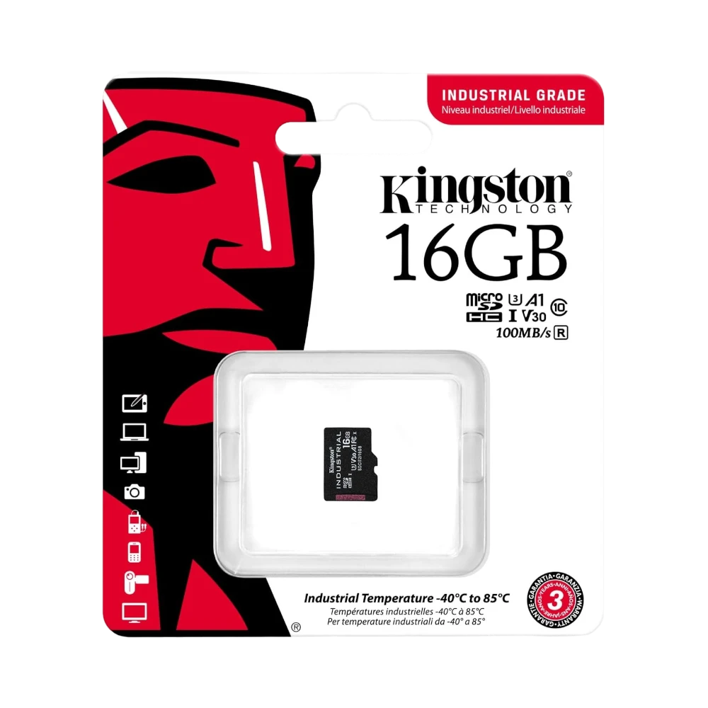 The Kingston SDCIT2/16GBSP is a microSDHC memory card designed to provide 16GB of reliable storage for industrial and embedded applications that require continuous operation in challenging environments. Featuring a pSLC architecture, it offers endurance comparable to more expensive SLC cards, ensuring data integrity even under frequent write-erase cycles. With UHS-I Speed Class U3, Video Class V30, and Application Class A1 ratings, it supports fast data transfers and responsive app performance, making it suitable for devices like single-board computers, IoT gateways, and video streaming systems.
