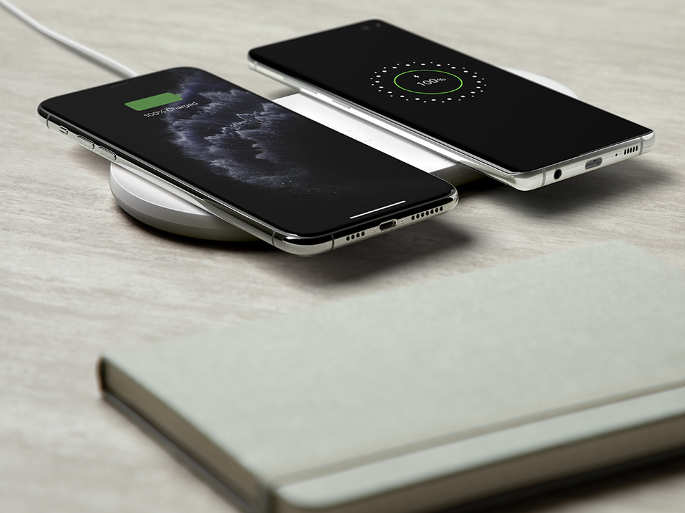 - Two independent charging zones that provide faster 10W wireless power compared to standard 5W pads, reducing charging time for compatible devices.