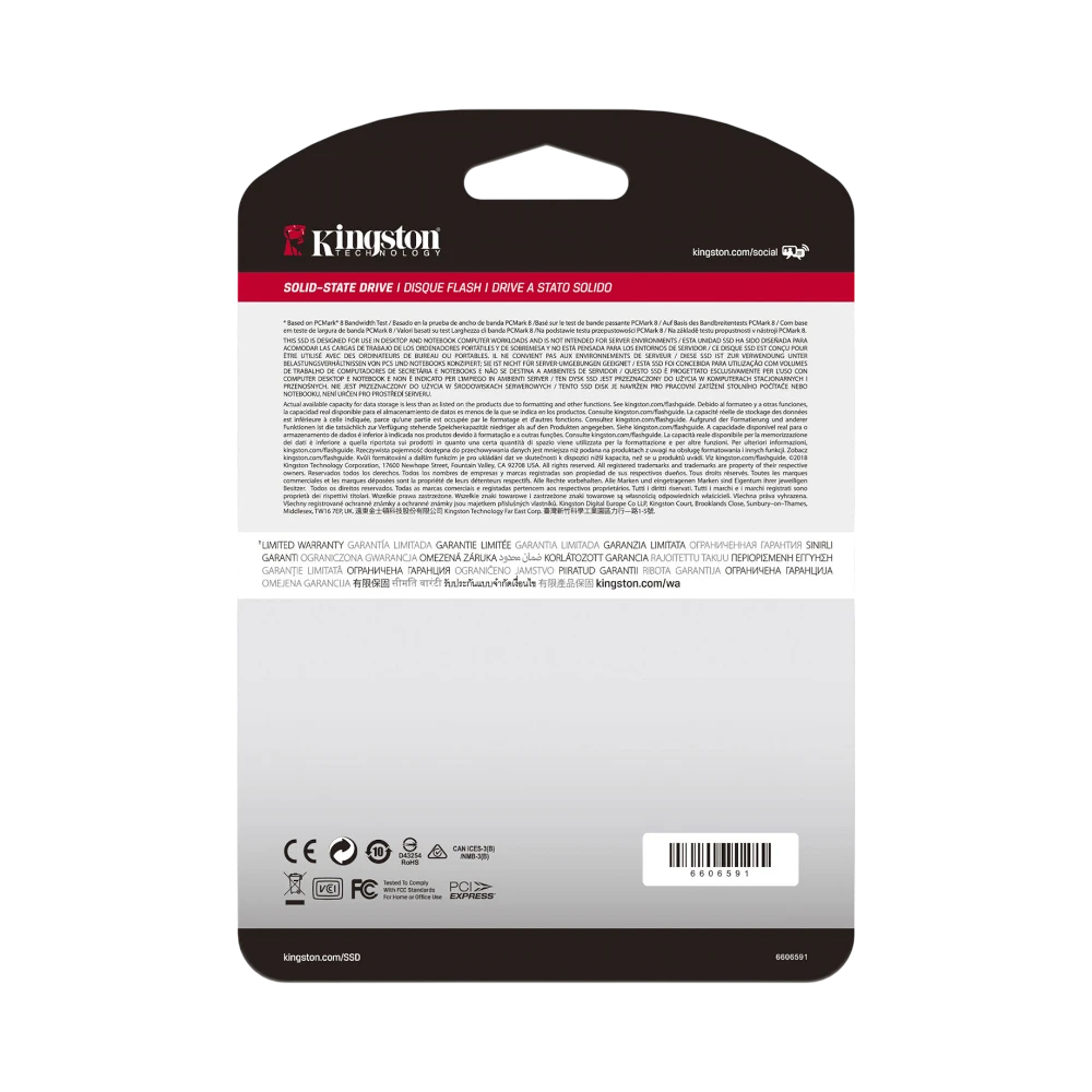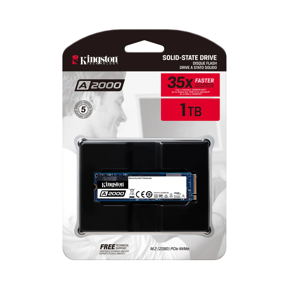 The Kingston SA2000M8/1000G is an internal solid state drive designed to fit into an M.2 2280 slot, delivering fast storage performance through its NVMe PCIe Gen 3.0 x4 interface. With read speeds up to 2200 MB/s and write speeds reaching 2000 MB/s, it significantly reduces boot times and accelerates loading for games, applications, and large files. Its 1 TB capacity built on 3D TLC NAND offers ample space for a variety of storage needs while maintaining energy efficiency compared to traditional SATA drives.