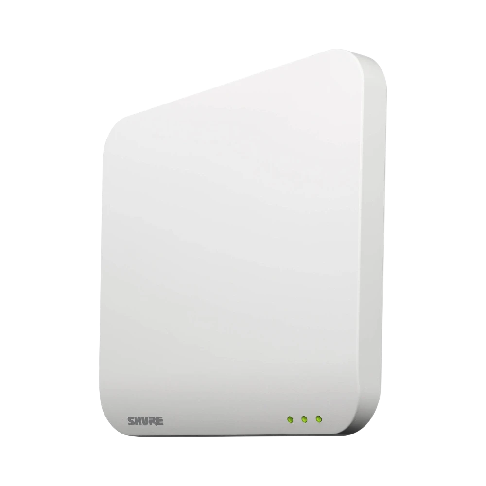 The Shure MXWAPT8=-Z10 is an eight-channel access point transceiver designed for Microflex Wireless systems, serving as a crucial RF bridge that transmits encrypted audio from wireless microphones to Dante-enabled mixers, DSPs, or recorders while managing control data in return. It simplifies installation by using a single Cat5e or Cat6 cable for both power and audio through PoE and native Dante networking. The device mounts discreetly on walls or ceiling tiles with a paintable cover to blend into any environment, making it suitable for professional settings like corporate boardrooms, government chambers, and classrooms.