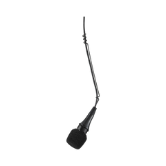 The microphone’s attached 25-foot cable is designed to connect directly to standard stage boxes or mixing consoles, eliminating the need for additional connectors above the audience. This setup is well suited for professional audio environments such as auditoriums, broadcast studios, and multi-purpose venues where reliable and interference-free connections are critical.