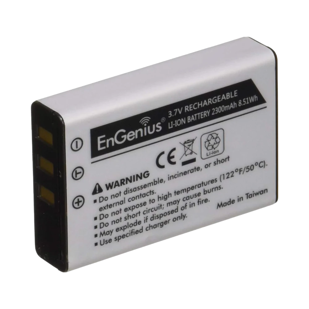 The EnGenius DURAFON-UHF-BA is a handset battery pack designed specifically for the DuraFon UHF cordless system. It delivers a reliable 3.7V output with a 2300mAh capacity, providing up to 360 minutes of talk time. This battery ensures your handset stays powered throughout long work shifts, supporting continuous communication in demanding professional environments.