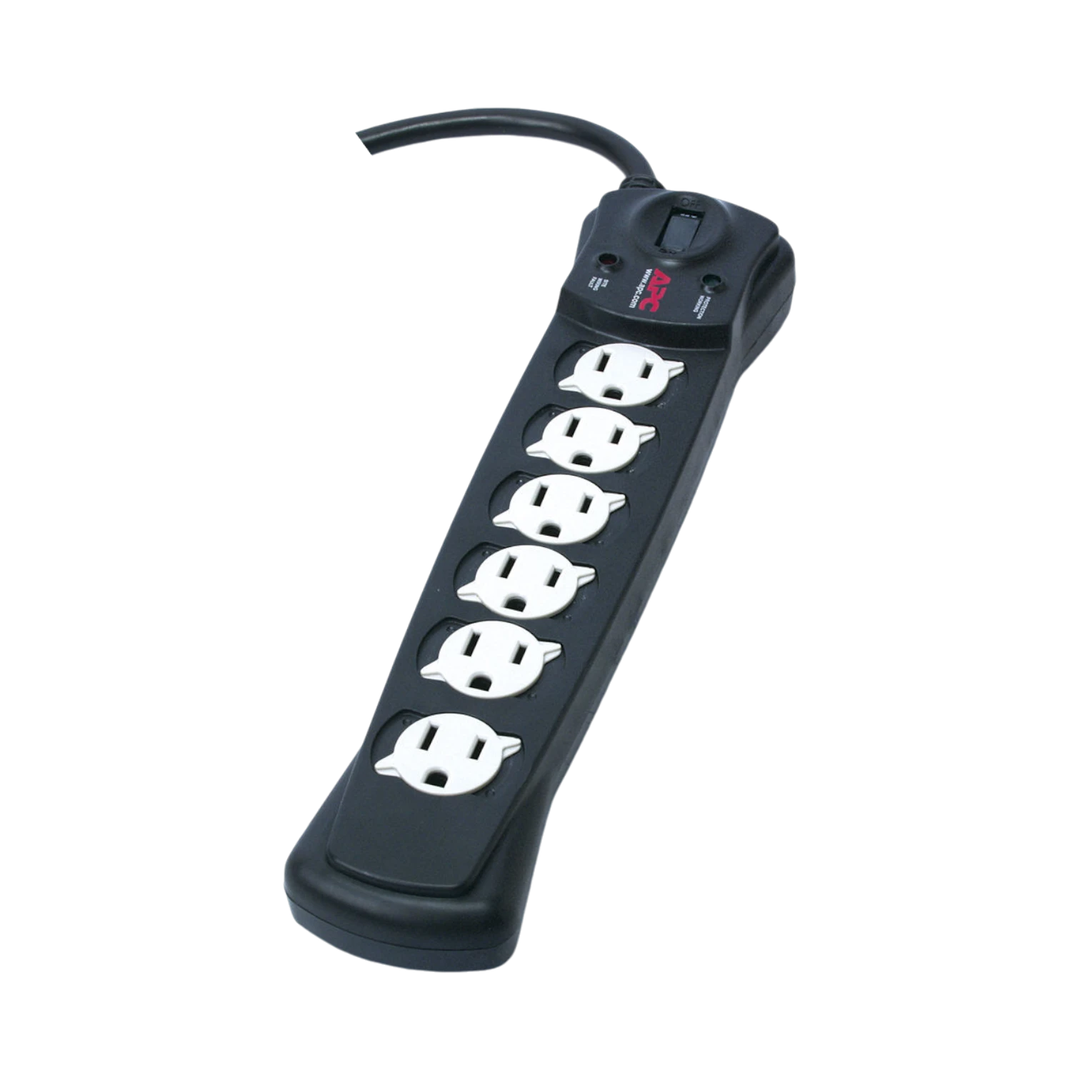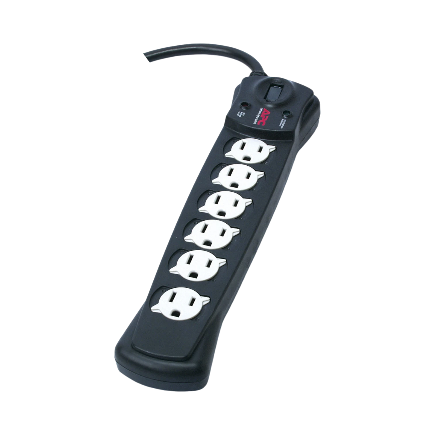 The APC P6B is a surge protector designed to safeguard your home or office electronics from sudden power surges and spikes. It features six outlets and provides 840 joules of surge protection, making it suitable for devices like computers, televisions, gaming consoles, and other everyday electronics. The unit also includes noise filtering to reduce electromagnetic and radio frequency interference, ensuring clearer audio and more stable network connections.