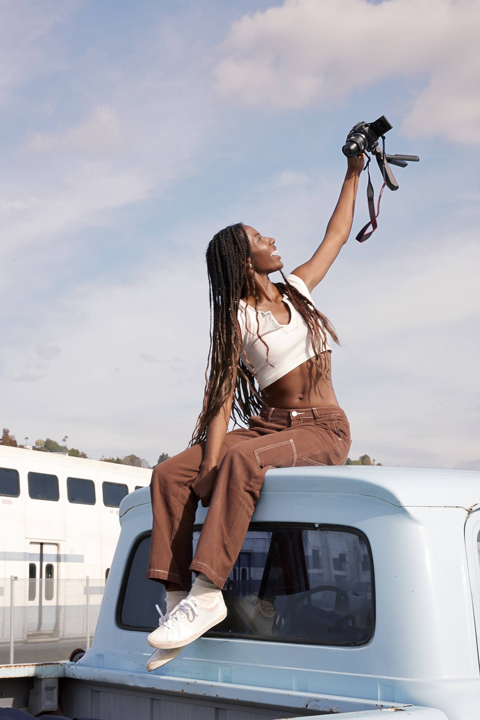 - Three-inch vari-angle touchscreen flips outward and forward, perfect for vlogging, product demos, and low-angle shots