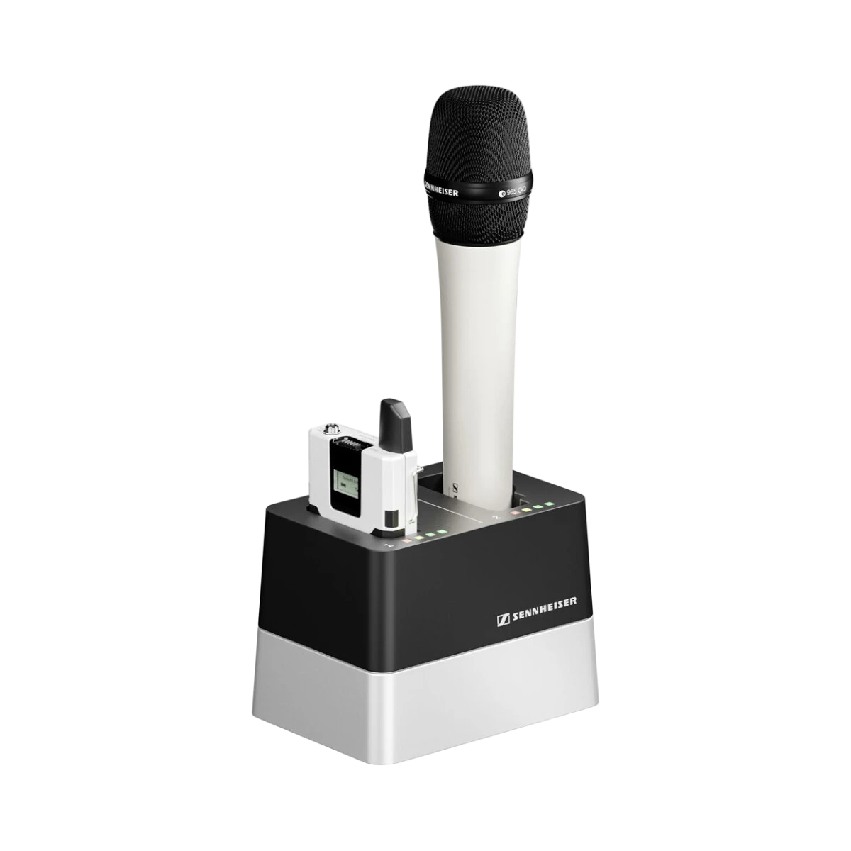 - Two charging bays that accept SL Bodypack DW and SL Handheld DW transmitters without removing the Accupack, simplifying the charging process