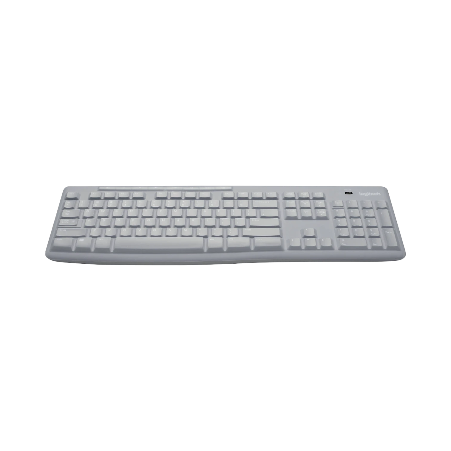 The Logitech 956-000019 is a silicone protective cover designed specifically for the Logitech K270 keyboard. It provides a thin, transparent layer that fits snugly over each key and the keyboard surface, creating a wrap-around seal that guards against dust, liquids, and wear. Despite its protective qualities, the cover adds very little bulk, maintaining the familiar typing experience users expect from their K270 keyboard.