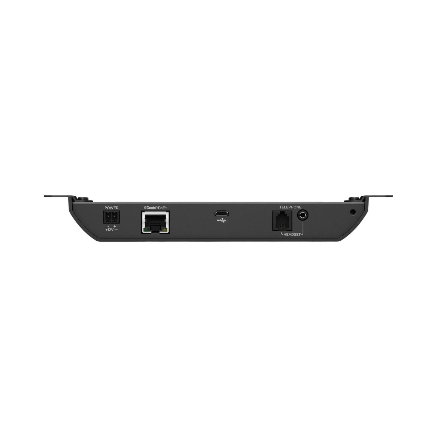 This endpoint uses a single network connection to carry Dante audio streams to and from the ControlSpace EX processor, simplifying cabling and integration. The USB port supports direct connection to laptops and soft-codec conferencing applications, while the headset jack accommodates personal headsets for private communication. This setup works well in environments where unified communications are essential, such as corporate meeting rooms and educational spaces.