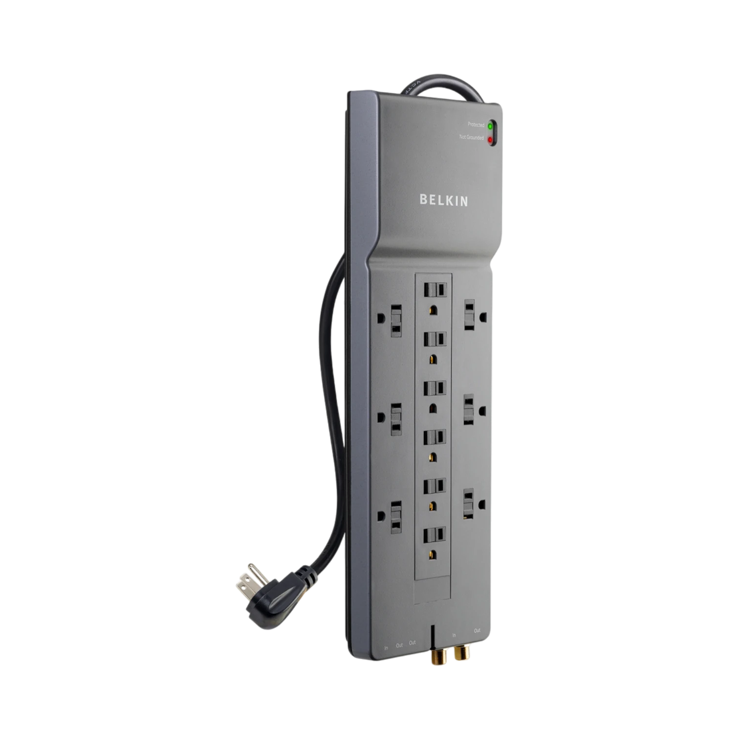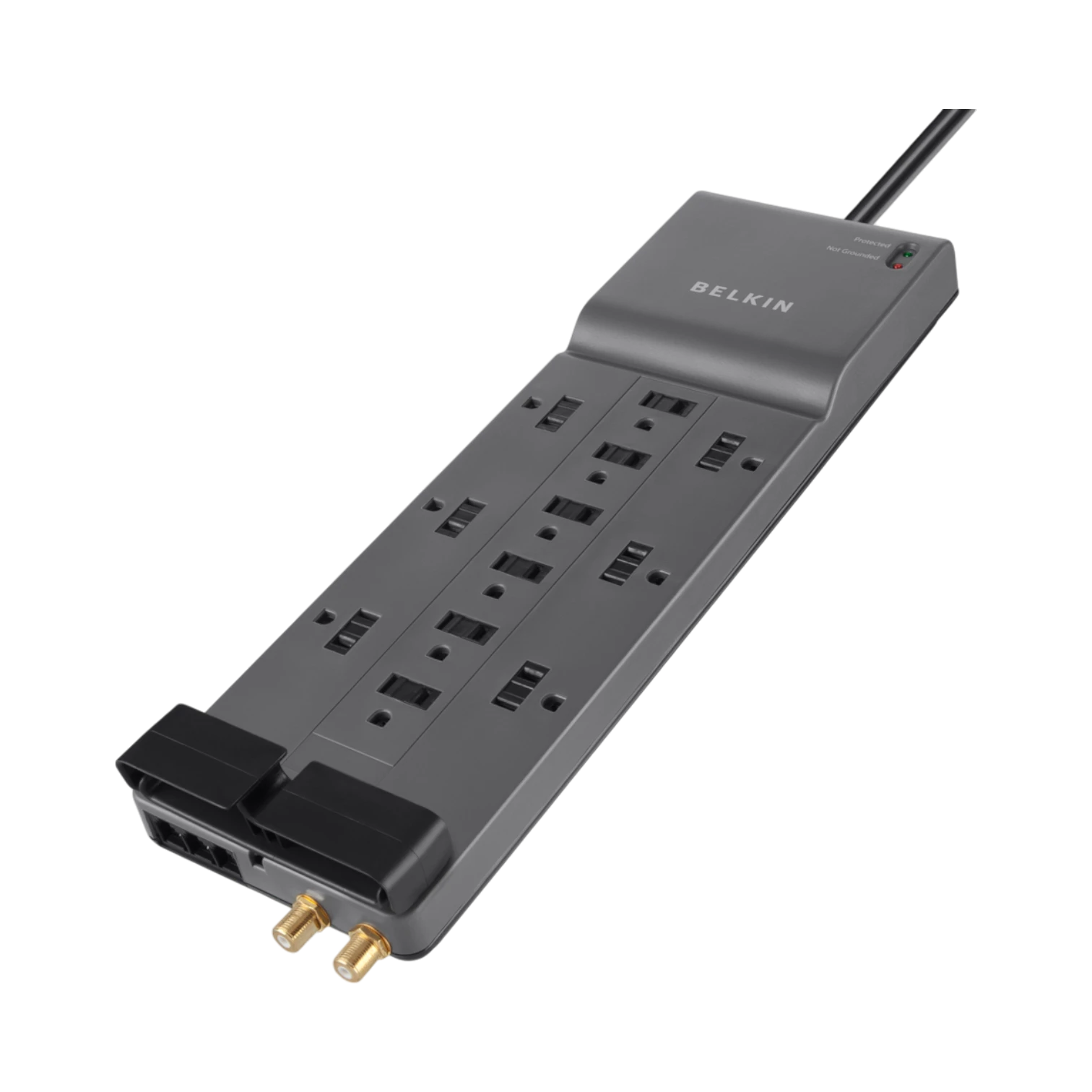 This surge protector supports a wide range of devices commonly found in home and office environments. The twelve AC outlets accommodate computers, printers, external drives, televisions, soundbars, gaming consoles, and chargers. The telephone and coaxial ports extend protection to modems, landline phones, and cable or satellite boxes, ensuring both power and signal lines are shielded from surges. Its compatibility with grounded outlets and the inclusion of a right-angle plug make it easy to integrate into existing setups without requiring additional adapters or extension cords.
