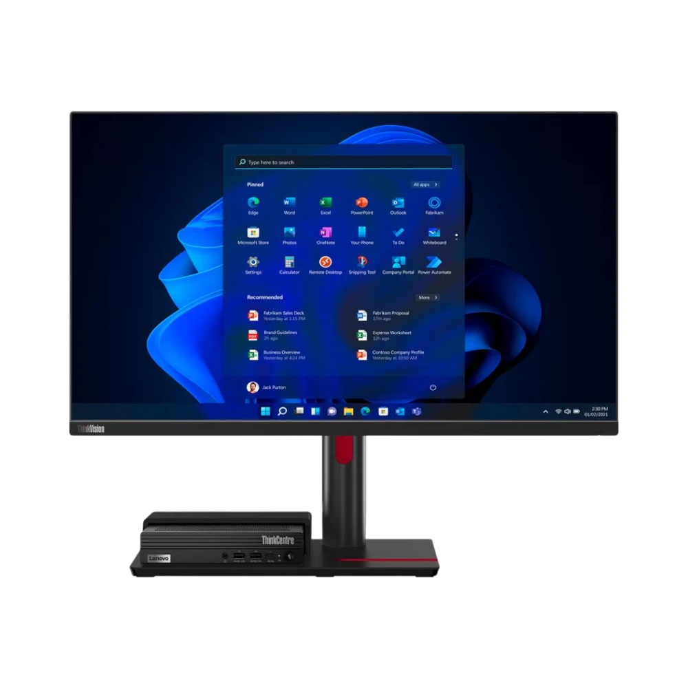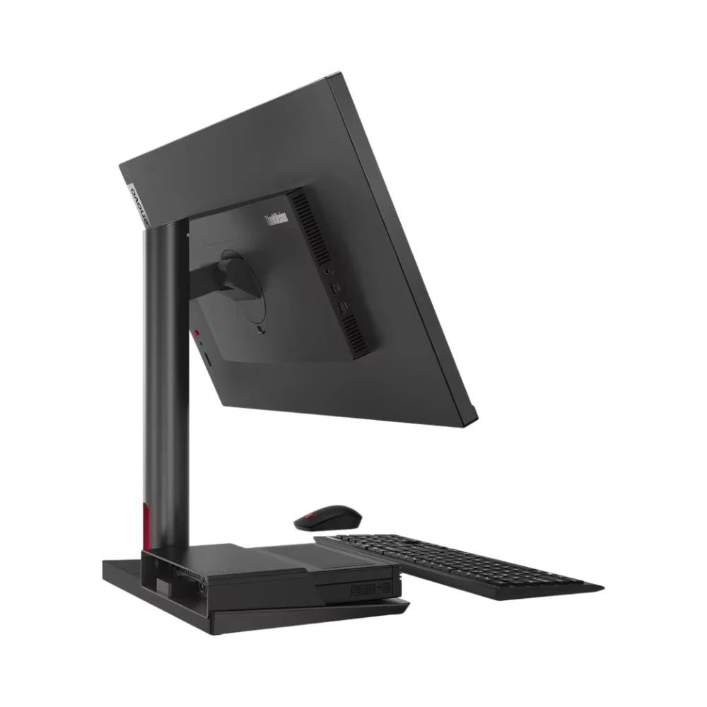 - Modular design supports direct integration with Lenovo Tiny desktops for a compact and tidy workspace.