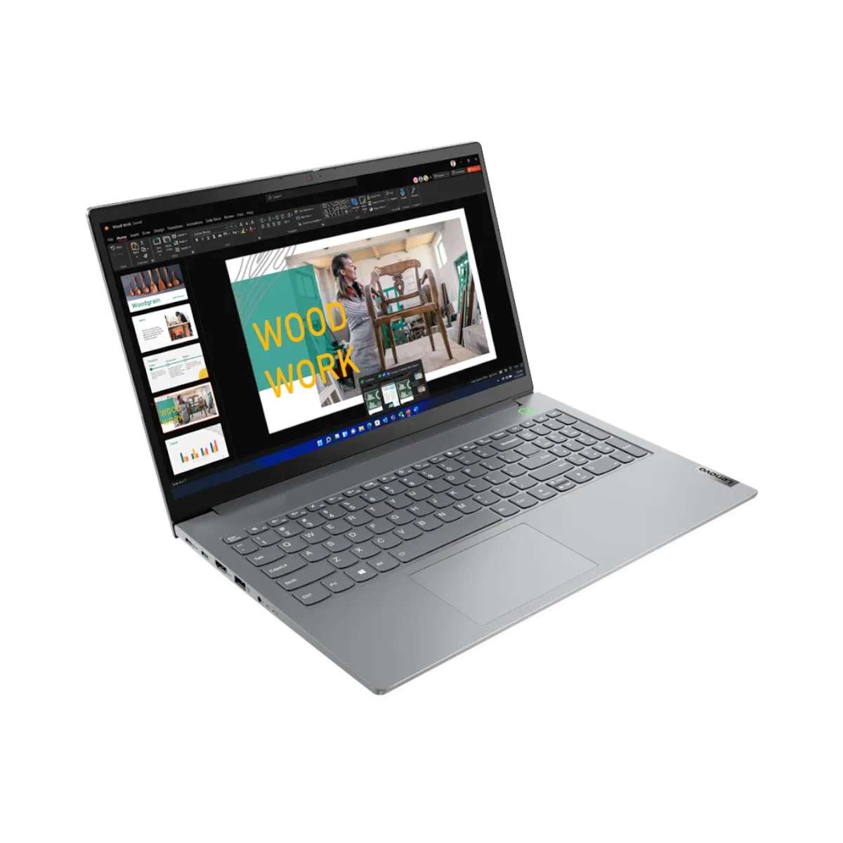 This ThinkBook model offers a wide range of ports and wireless options to fit into diverse work setups. The USB4 port with Thunderbolt 4 support allows for high-speed data transfers and connection to multiple external displays or docks. USB-C and HDMI ports provide additional display and peripheral options, while the SD card reader supports quick access to media files. Wired Gigabit Ethernet ensures stable network connections when Wi-Fi is unavailable or less reliable. The inclusion of Wi-Fi 6E and Bluetooth 5.1 keeps wireless connections fast and efficient for modern office environments.