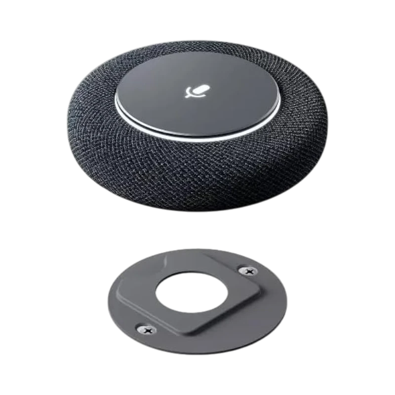 - Two omnidirectional mic pods pick up voices within approximately 6.6 feet, ensuring everyone is heard during discussions.
