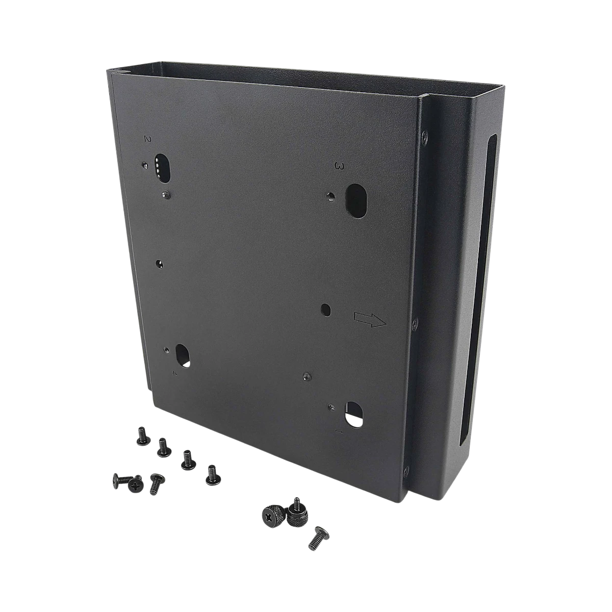 The open design allows easy access to all ports and controls without needing to remove the PC from the mount, making it convenient to connect peripherals or adjust settings. Installation is straightforward with all necessary screws included, enabling quick setup without additional tools or parts. This mounting kit is ideal for creating a clean and organized environment, especially in offices or areas where space efficiency and accessibility are priorities.