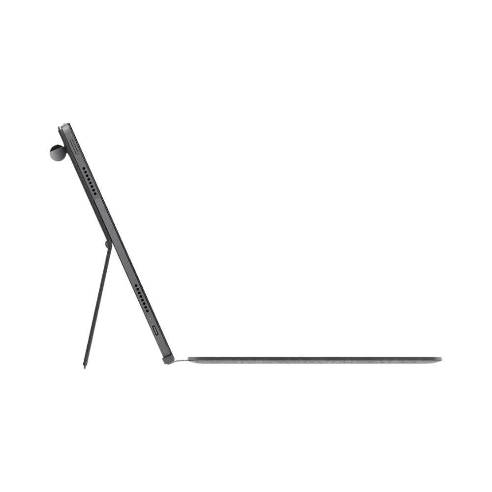 - Detachable folio keyboard with integrated touchpad that magnetically attaches and folds flat for versatile use as a laptop or tablet