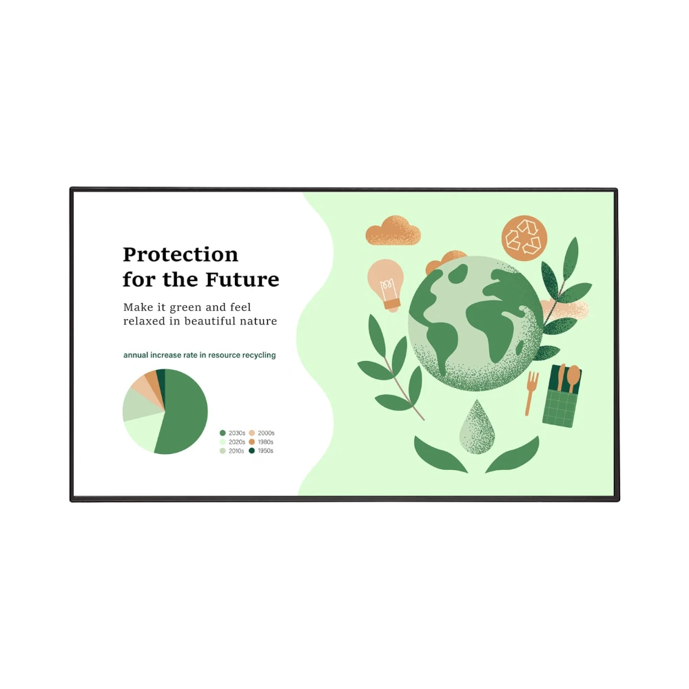 This monitor is a solid choice for businesses that need a dependable, high-quality display for digital signage, corporate communications, or public information screens. Its combination of brightness, durability, connectivity, and smart features makes it well suited for environments like retail stores, airports, hotels, and offices.