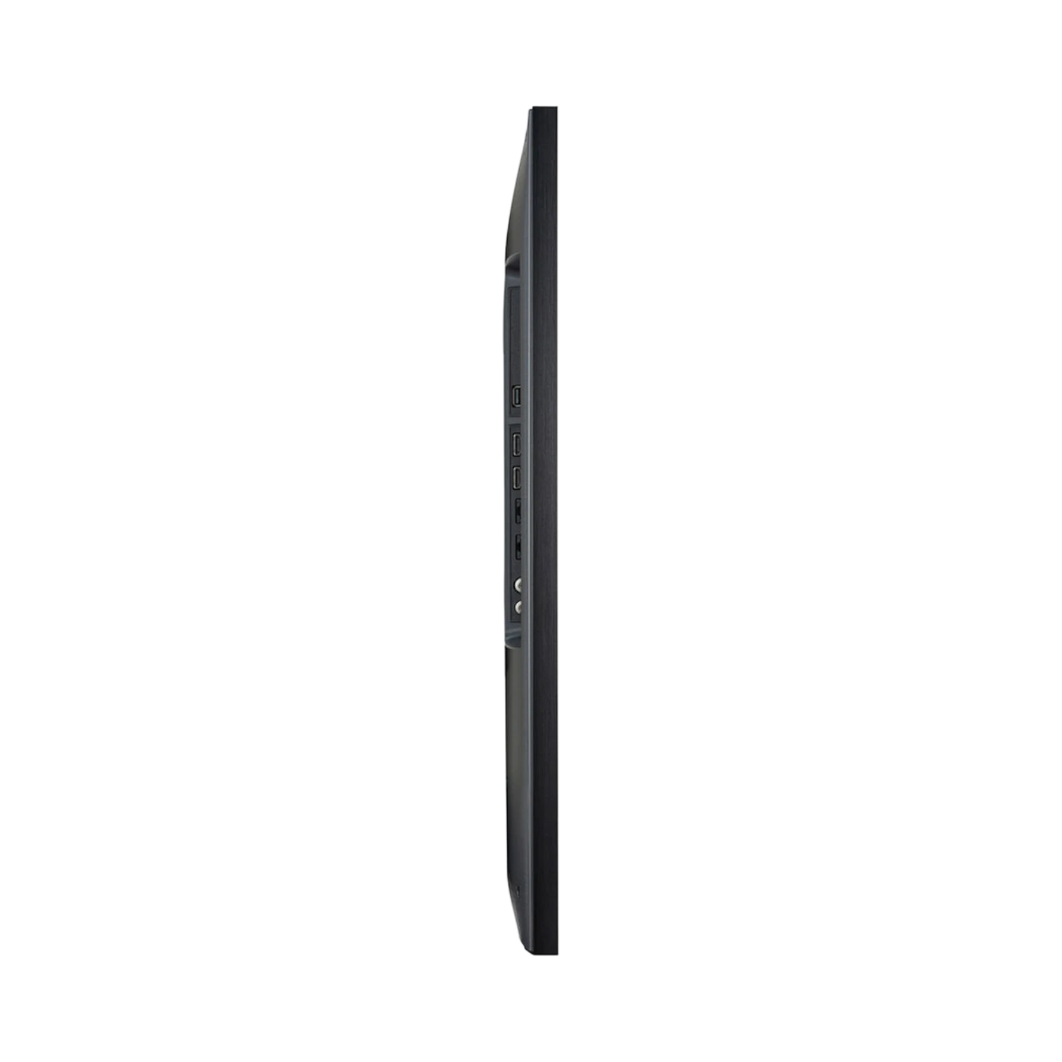 This display offers a broad range of input options to connect multiple devices simultaneously. The three HDMI ports support high-definition video sources, while the two USB-A ports allow for media playback or peripheral connections. LAN and RS-232 ports provide reliable wired network and control system integration. The built-in Wi-Fi can serve as a wireless hotspot, enhancing flexibility in network setups. Compatibility with Cisco conferencing gear and Crestron control systems ensures smooth operation within professional AV and IT infrastructures.