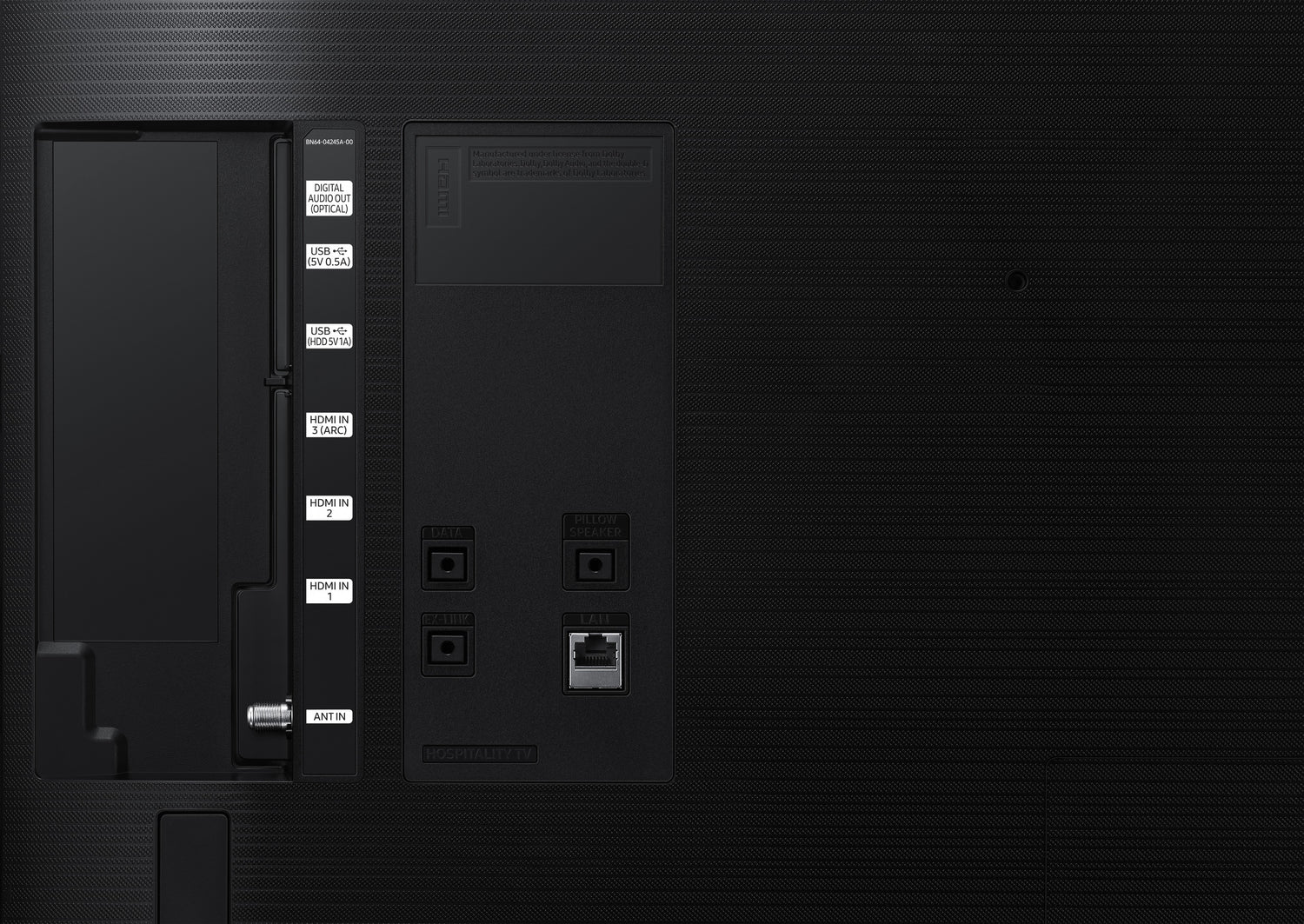 This TV also includes a Pillow Speaker Interface for private audio listening without headphones, reducing room noise while still providing built-in speakers for general use. Running on Samsung’s Tizen operating system, it offers an intuitive interface for staff to manage channels, apps, and network settings efficiently. Connectivity options include three HDMI inputs, two USB ports, Ethernet, Wi-Fi 5, and Bluetooth, allowing easy integration with various devices.