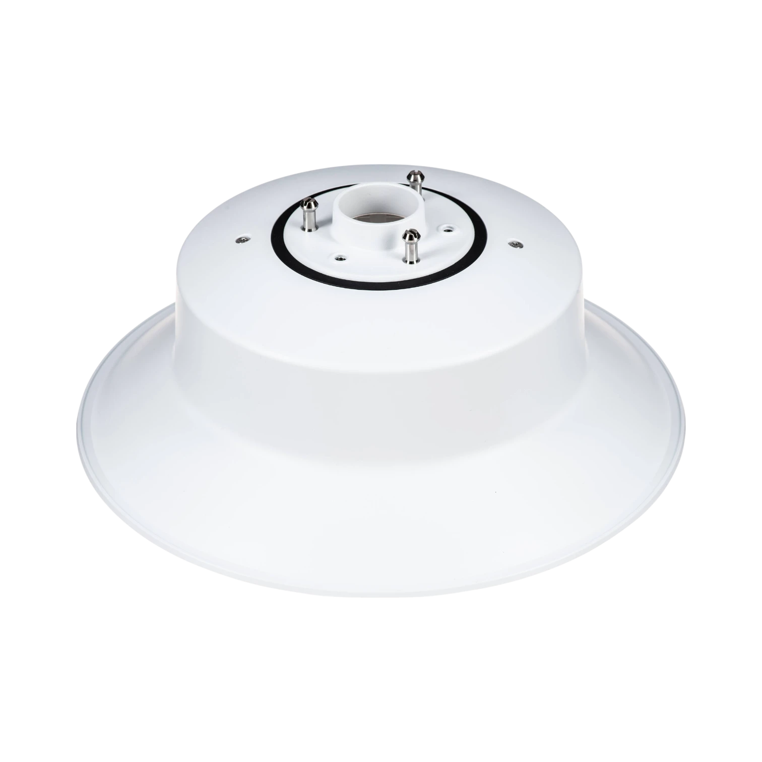 Constructed from corrosion-resistant materials, the kit withstands moisture and temperature fluctuations, making it suitable for harsh outdoor environments. Its integrated cable channel protects network and power connections, maintaining a clean and tamper-resistant installation. The white finish helps the mount blend seamlessly with most building exteriors and indoor ceilings, preserving the aesthetic of the installation site.