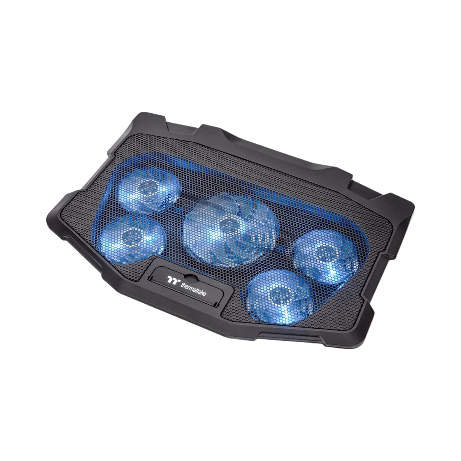 The Thermaltake CL-N018-PL12BU-A is a notebook cooler designed to maintain optimal temperatures for laptops ranging from 10 to 17 inches. It features a central 120 mm fan combined with four 80 mm LED fans that efficiently draw heat away from the laptop’s underside, helping to prevent thermal throttling during intensive tasks like gaming, video editing, or multitasking. Its ergonomic design includes a two-stage riser to adjust the typing angle, promoting comfort during extended use.