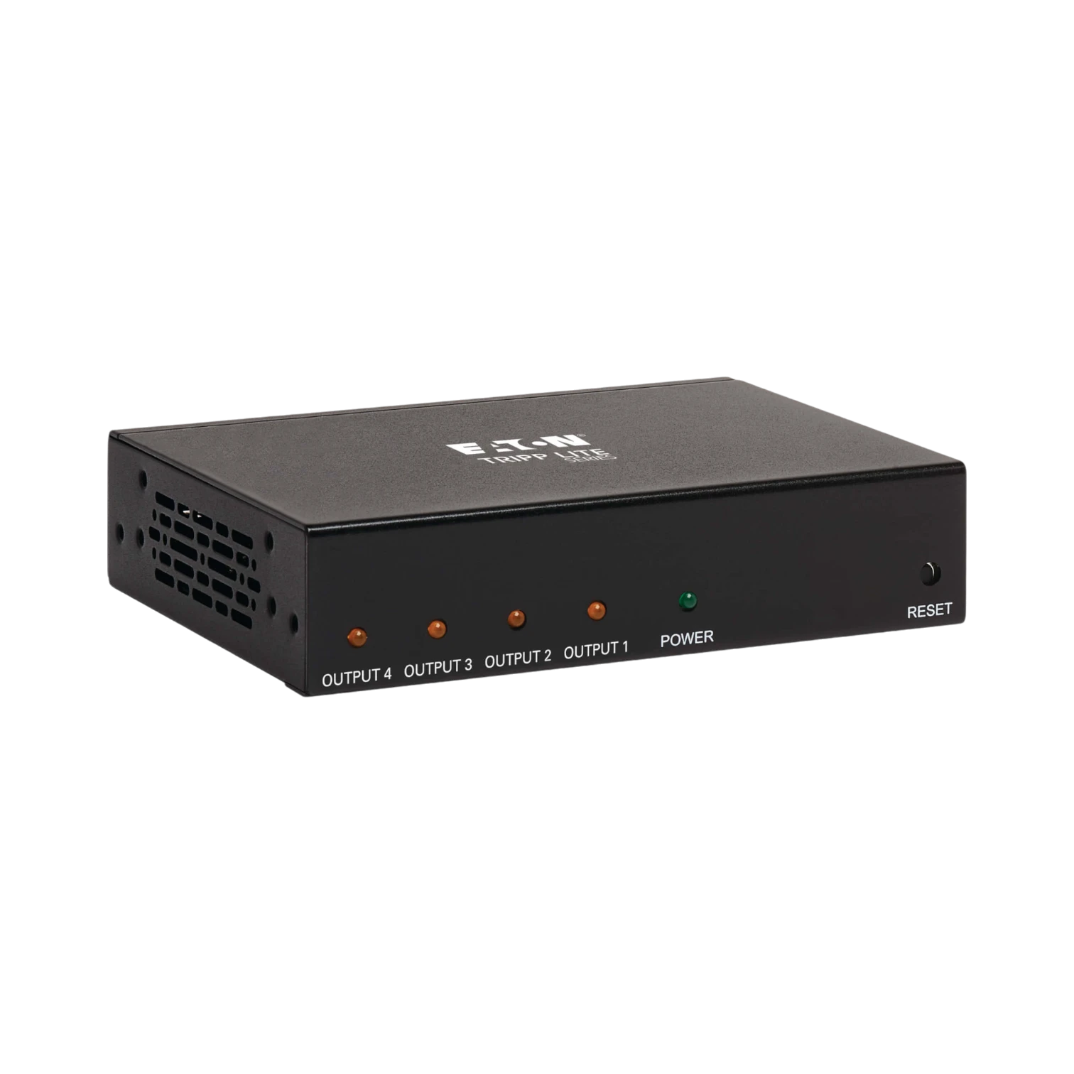 Setting up the Tripp Lite B118-004-HDR is straightforward and requires no software or driver installation. Simply connect your HDMI source and up to four displays using high-speed HDMI cables, then plug in the included external power supply. The international plug adapters allow easy deployment in different regions, making it convenient for travel or multi-location use. This plug-and-play design reduces setup time and complexity for both installers and end users.