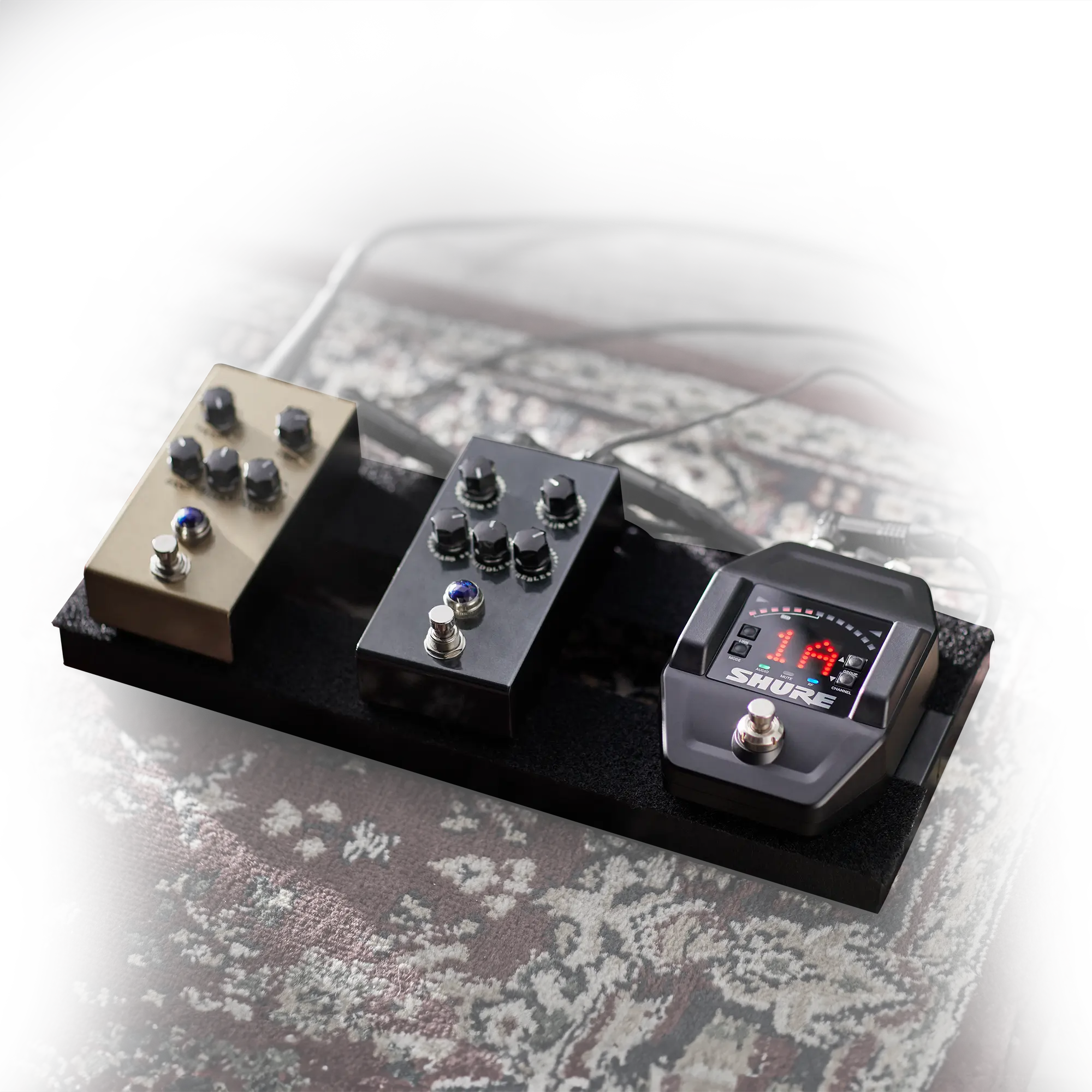 - Pedal receiver integrates a tuner with adjustable pitch reference and selectable strobe or needle display modes, saving space on your pedalboard