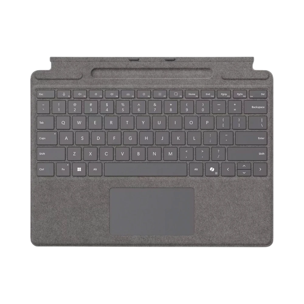 The Microsoft 8XB-00186 is a keyboard cover designed specifically for Surface Pro tablets, transforming them into fully functional workstations that remain easy to carry. It magnetically attaches to Surface Pro 10, 9, 8, and Pro X models, providing a stable typing experience without adding bulk. The keyboard features a full mechanical keyset with backlit keys, allowing comfortable typing even in low-light environments. Additionally, it includes a recessed tray that stores and charges the Surface Slim Pen, keeping it accessible for sketching, note-taking, or document markup.