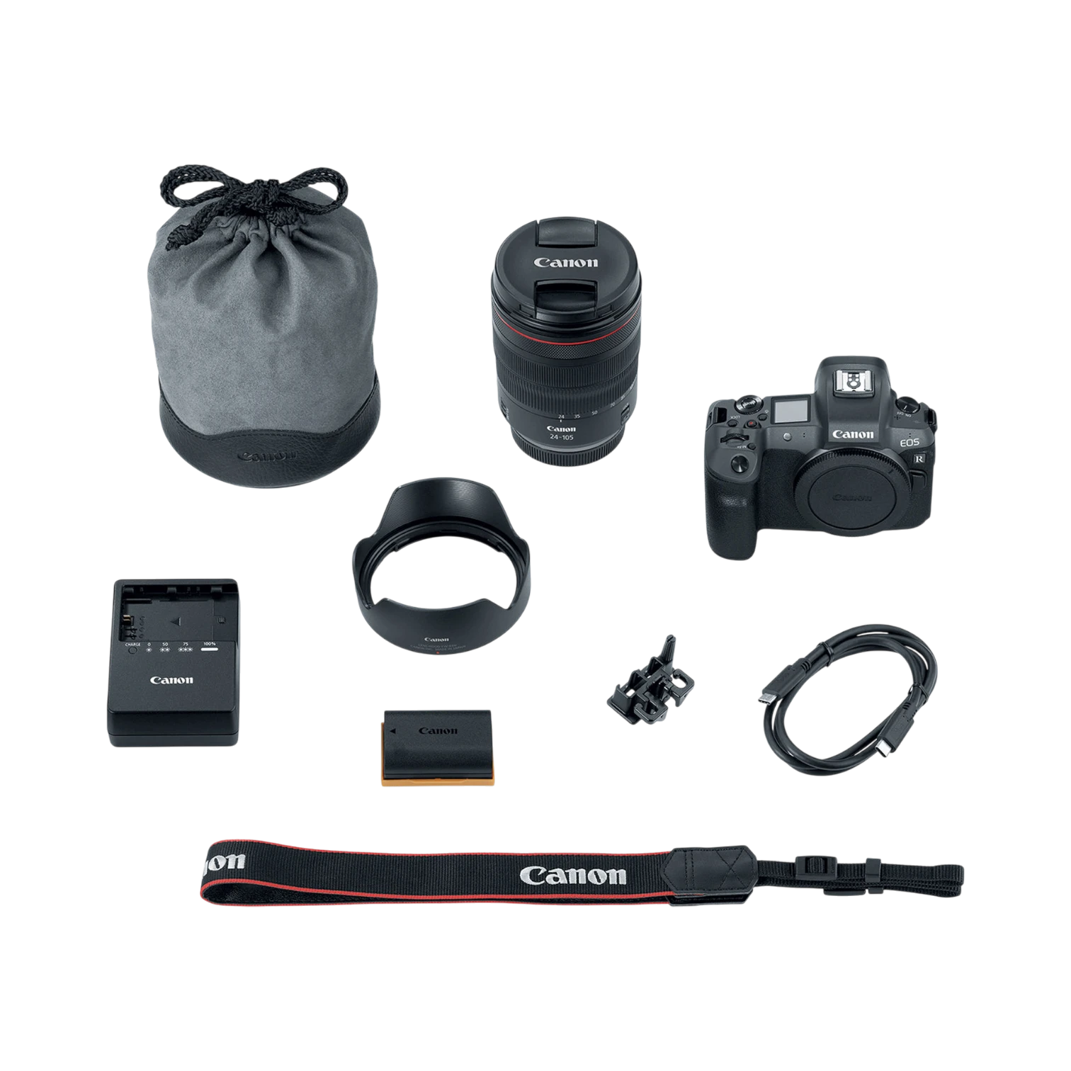 - RF 24-105mm f/4 lens covers a wide range of focal lengths, from landscapes to portraits, with built-in image stabilization to reduce blur during handheld shooting.