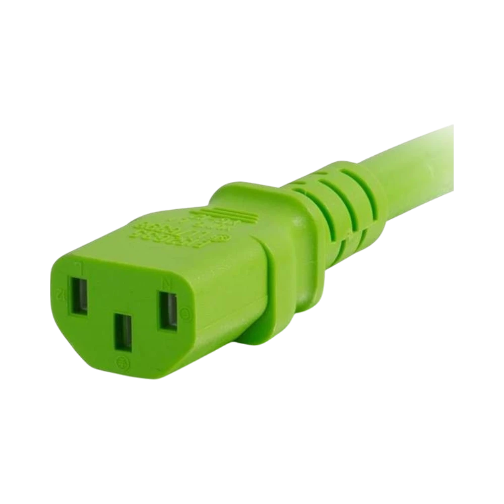 The C2G 17567 is a 10-foot power cord designed to connect rack PDUs to servers, switches, or other hardware requiring up to 10 amps at 250 volts. Its 14 AWG conductors ensure low voltage drop, providing a stable and consistent power supply essential for mission-critical equipment. The bright green jacket makes it easy to identify in dense rack environments, helping reduce downtime during maintenance and supporting organized cable management in shared data centers.