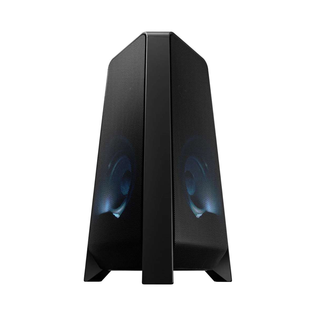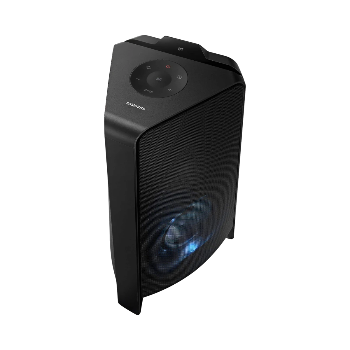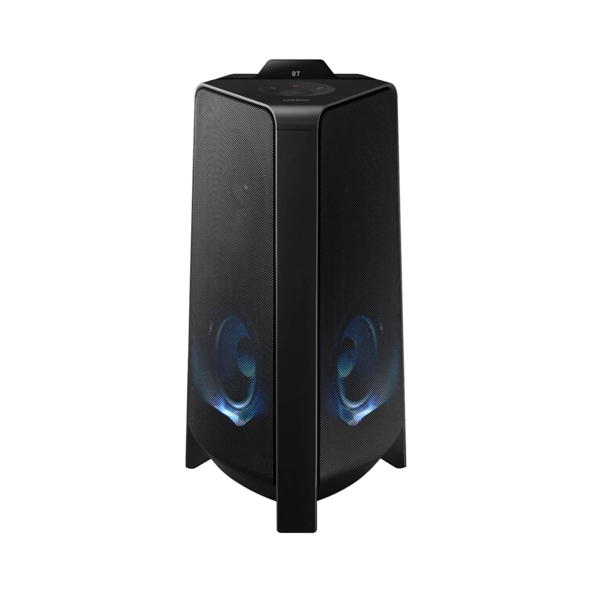 The Samsung MX-T50/ZA is a wireless bi-directional speaker designed to deliver powerful 500-watt sound that fills both indoor and outdoor spaces with rich audio. It features a Bass Boost button for enhanced low frequencies and built-in LED lights that create dynamic atmospheres with Party, Ambient, and Dance modes. This speaker supports Bluetooth Multi-Connection, allowing two devices to connect simultaneously for seamless music sharing, and includes two USB ports for music playback and device charging.