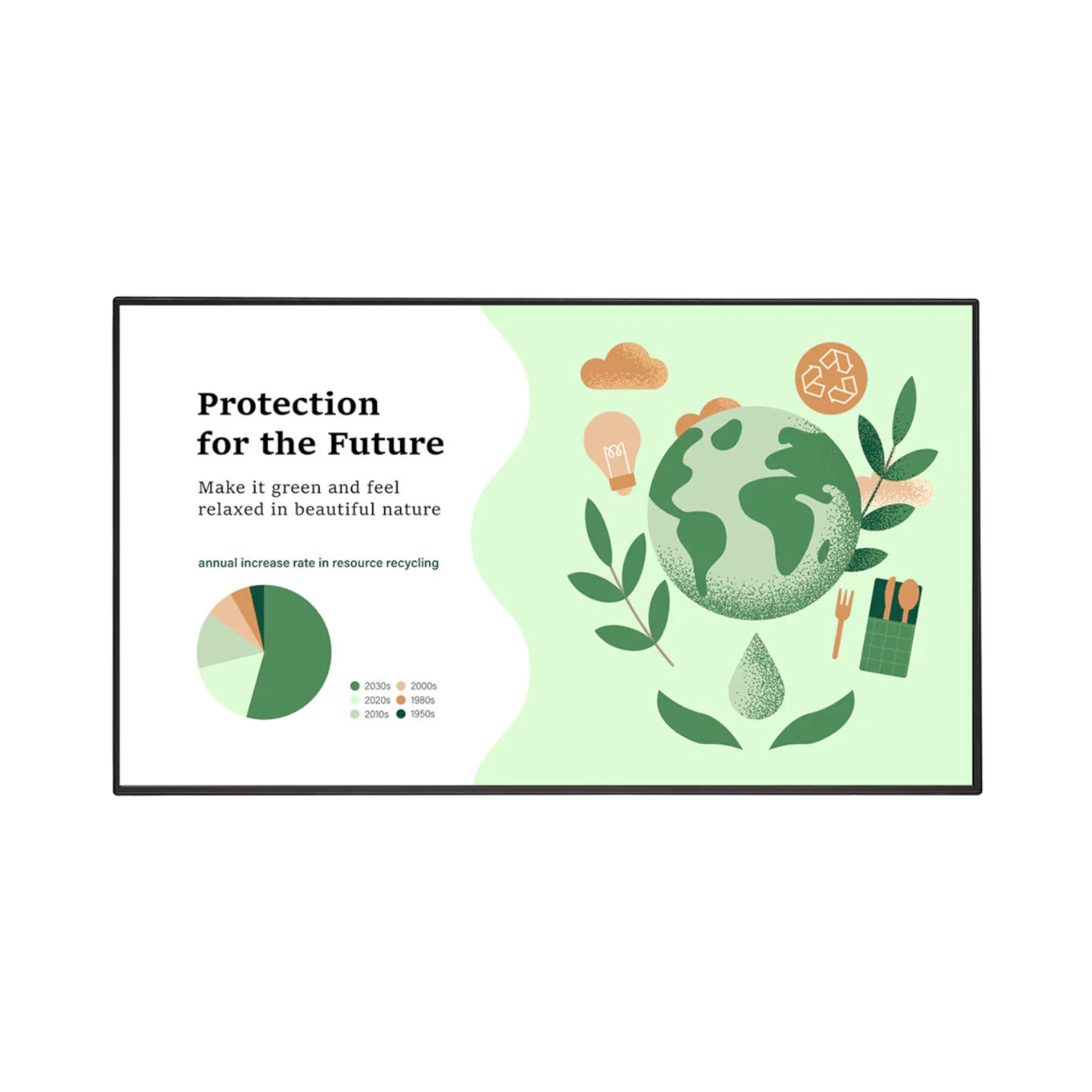 - Screen rotation capability to portrait or landscape orientation, supported by a 300 x 300 mm VESA mount for versatile installation