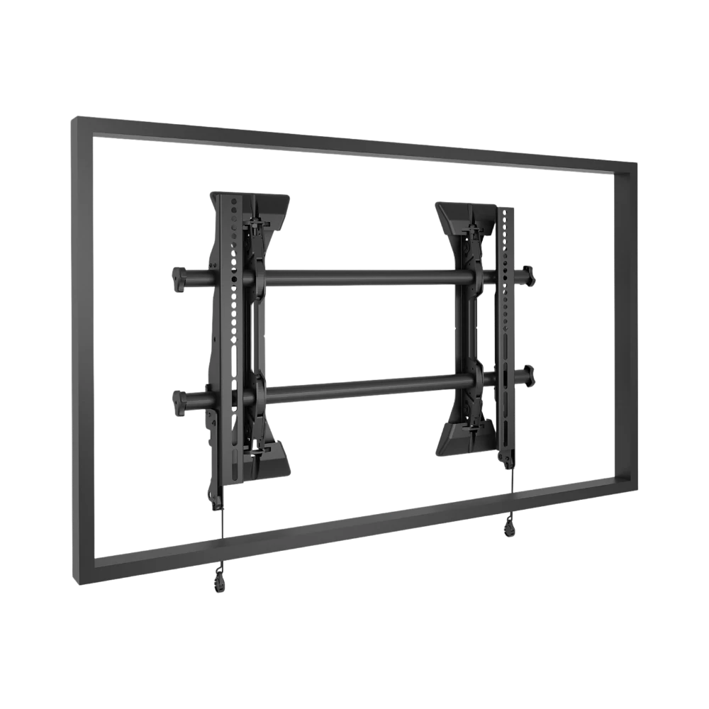 Installation is designed to be straightforward with included alignment tools that assist after the mount is secured to the wall. The ControlZone leveling system allows installers to fine-tune height and tilt, ensuring the display is perfectly aligned even on uneven surfaces. Centerless Shift provides lateral movement to center the display without needing to reposition wall studs, simplifying the setup process.