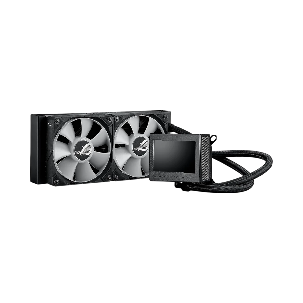The ASUS ROG RYUJIN III 240 ARGB is a liquid CPU cooler designed for PC enthusiasts seeking reliable thermal management combined with quiet operation and customizable aesthetics. It features a 240 mm aluminum radiator paired with an eighth-generation Asetek pump that efficiently circulates coolant to maintain optimal temperatures for modern multi-core processors. The cooler also includes a 3.5-inch full-color LCD that displays real-time system information or custom animations, adding both functionality and style to your build.