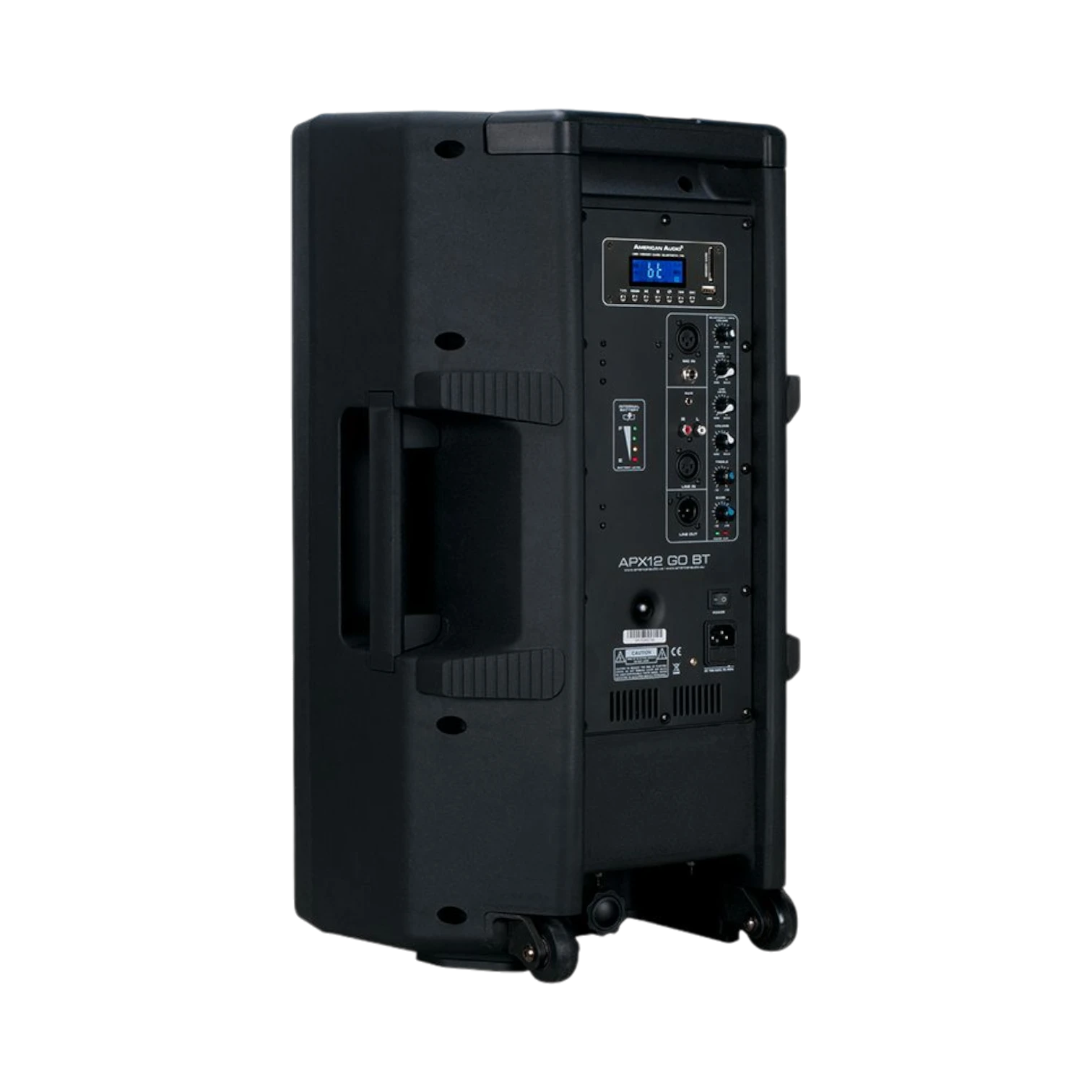 The APX12 GO BT delivers consistent, room-filling sound with a balanced frequency response that handles both deep bass and crisp highs. Its rechargeable battery supports extended use without interruption, and the rugged enclosure protects the speaker during transport and outdoor use. The included UHF handheld microphone and remote control enhance performance flexibility, allowing you to manage sound from a distance while maintaining clear audio quality.