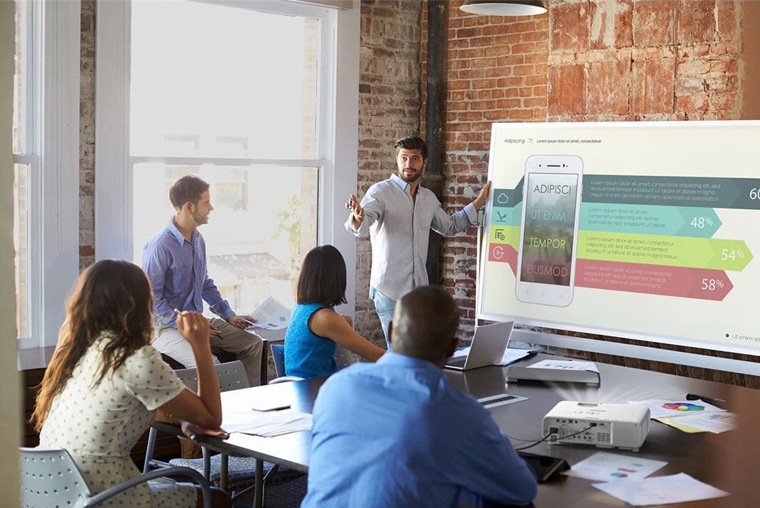 - High brightness level that keeps images vivid in rooms with ambient light, supporting active note-taking and discussions.