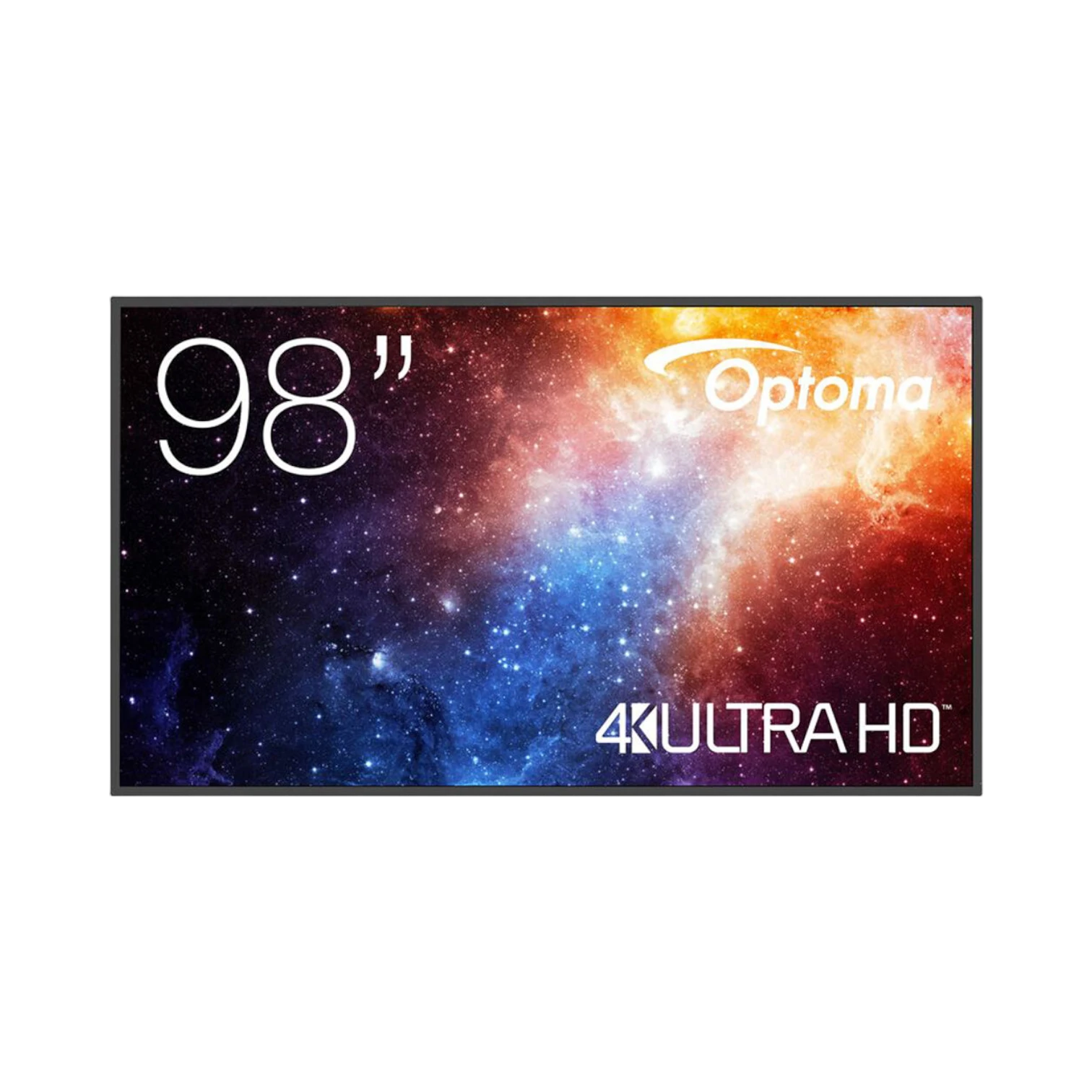 The Optoma N3981K is a commercial monitor designed to deliver a large and detailed viewing experience with its 98-inch screen and native 4K UHD resolution (3840 × 2160). It offers a brightness of 500 nits and a matte anti-glare finish, ensuring clear visibility even in brightly lit environments. Running on Android 11 with 4 GB of RAM and 32 GB of internal storage, this display supports versatile media playback and app installation without needing external devices.