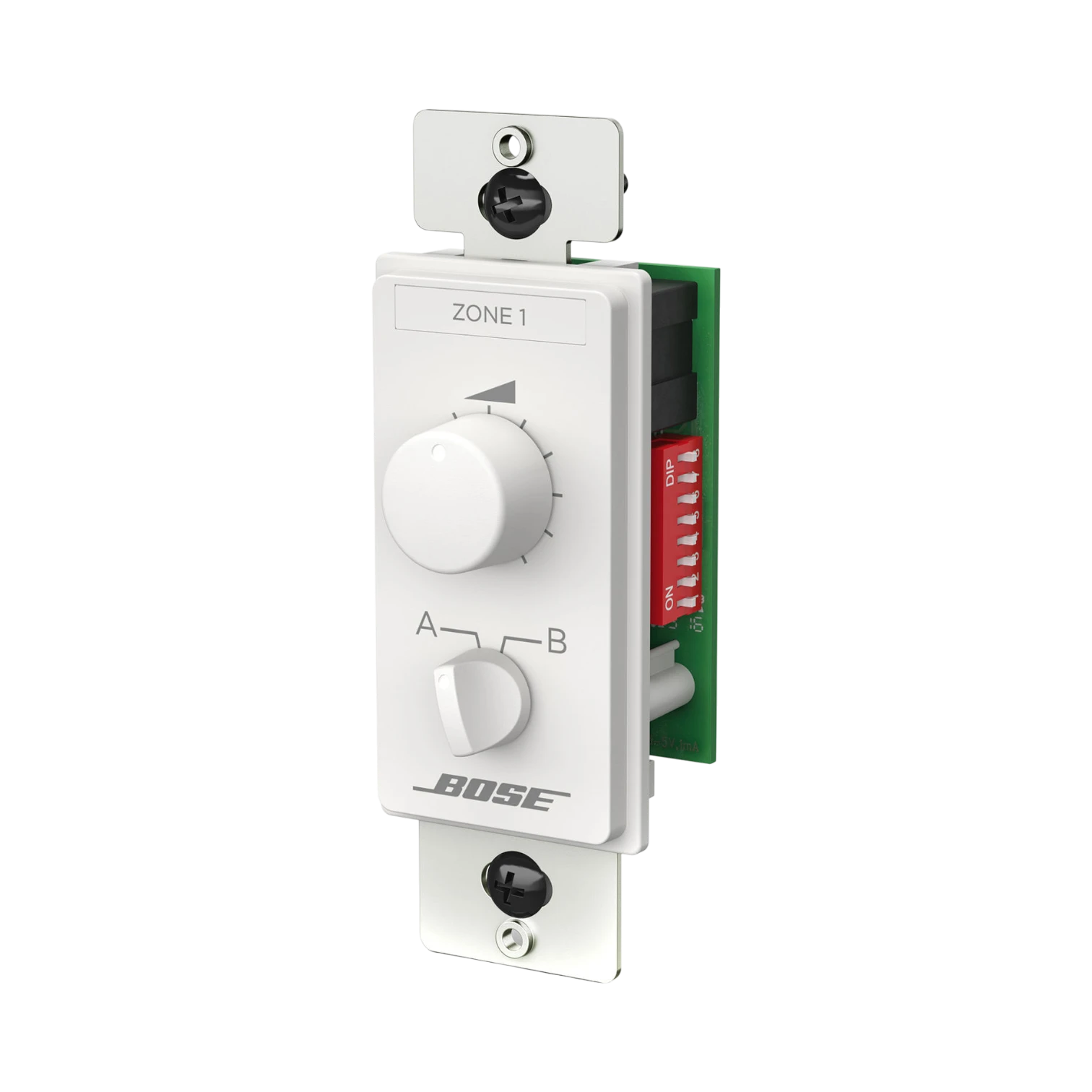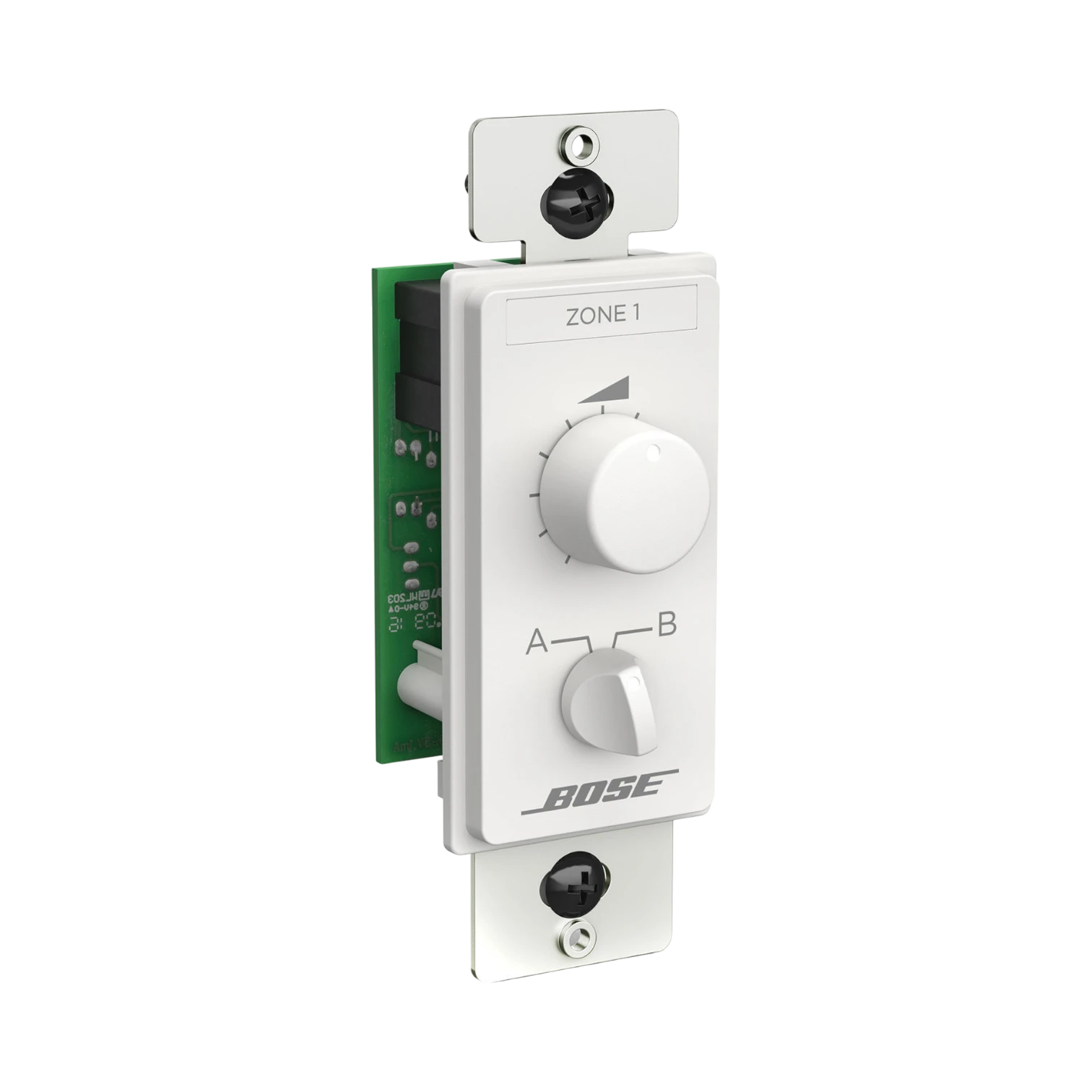 The Bose 768938-0210 is a wall-mounted zone controller designed to provide quick and reliable volume management and source selection for a single audio zone. It works seamlessly with Bose FreeSpace amplifiers, PowerShare amplifiers, and ControlSpace processors, placing essential audio control directly where it is needed rather than at a central rack. The controller features a smooth rotary volume control and a simple two-position switch for selecting between two audio sources, making it easy for users to adjust settings confidently.