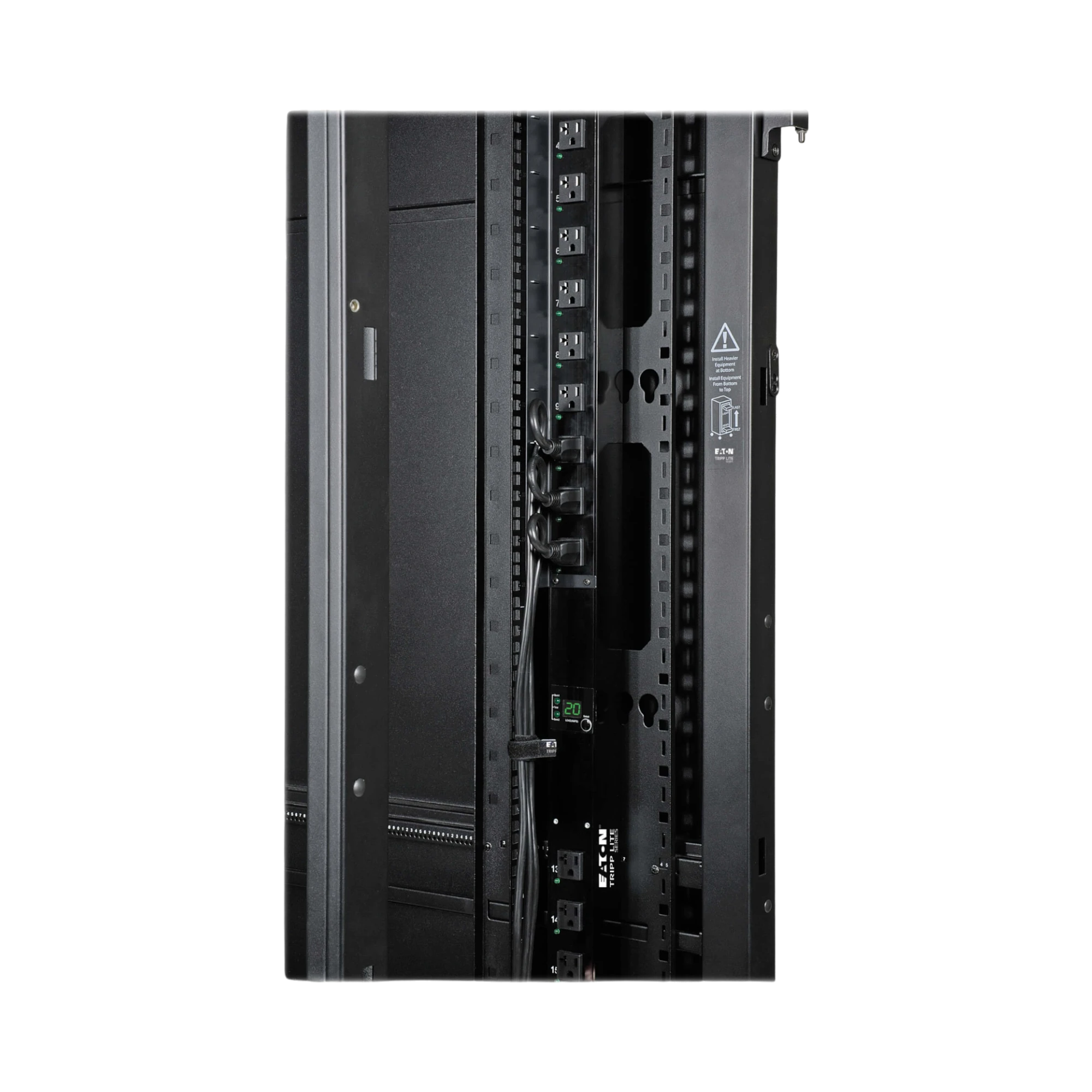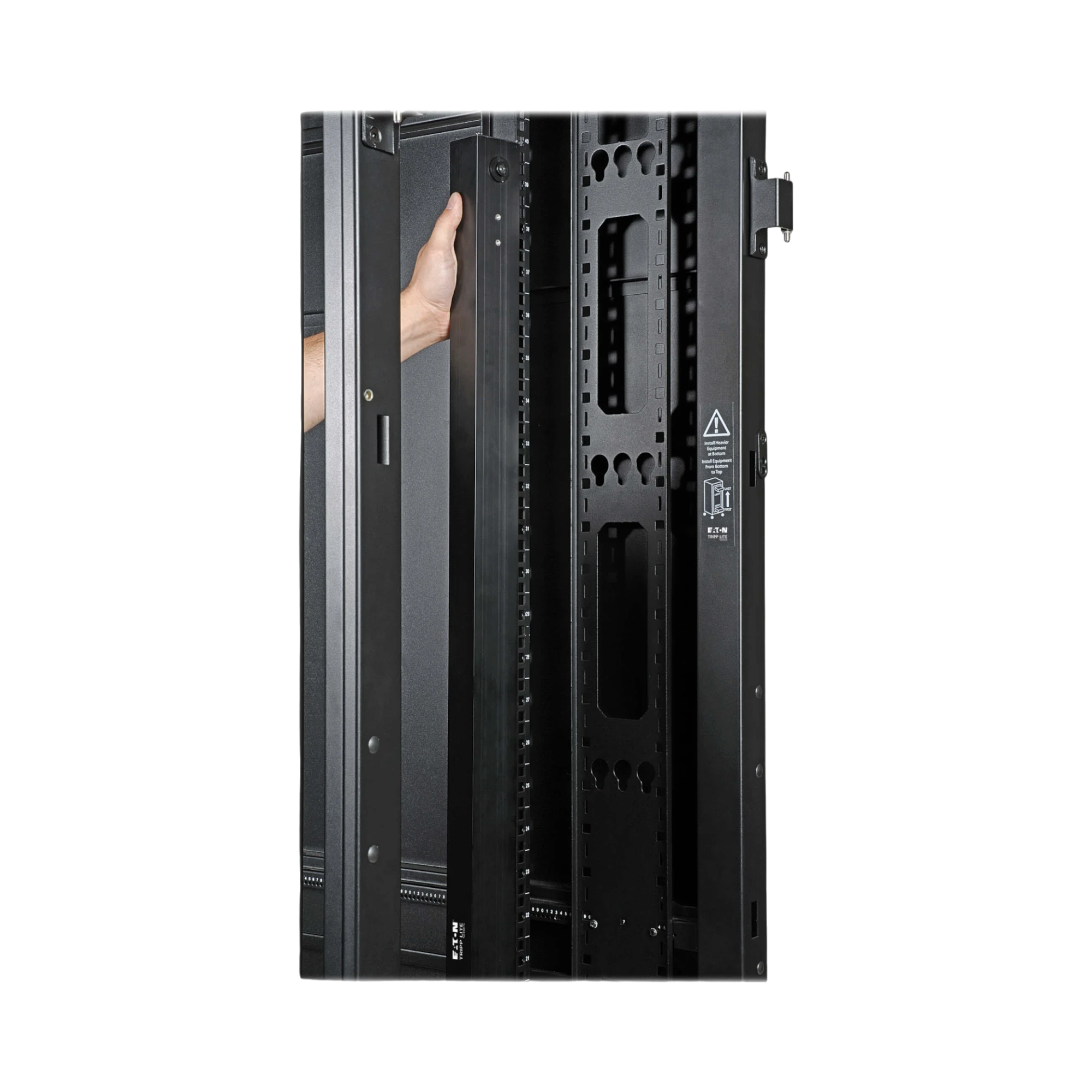 - Tool-less mounting points for Tripp Lite PDUs and vertical cable managers keep the interior organized and clutter-free