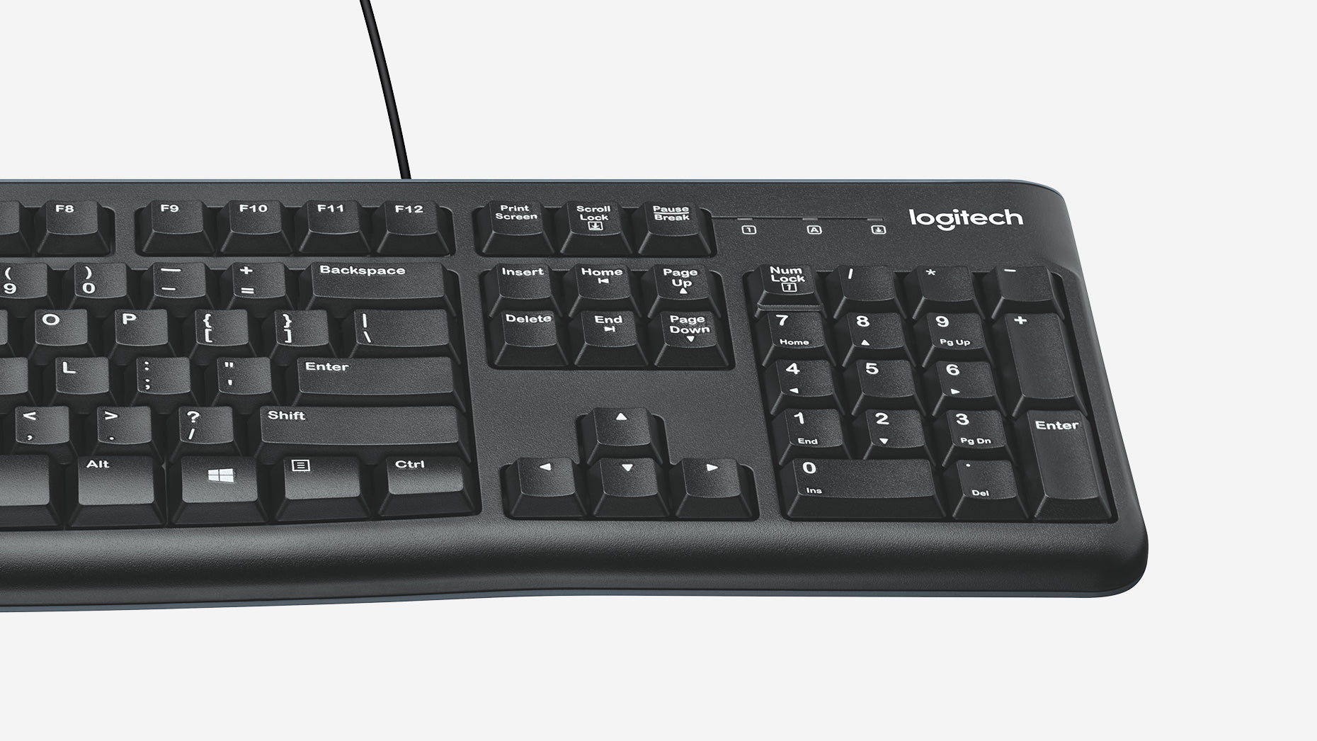 - Full-size keyboard layout with numeric keypad and clear indicator lights for caps lock and num lock status