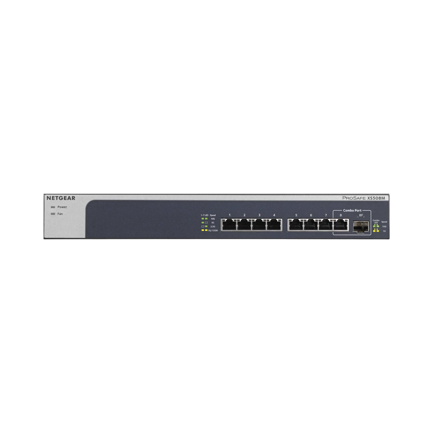 The NETGEAR XS508M-100NAS is an 8-port unmanaged switch designed to deliver up to 10-gigabit speeds on every copper port, making it an excellent choice for homes, studios, and small offices that require fast and reliable data transfer. It supports multiple speeds including 100 Mb, 1 Gb, 2.5 Gb, 5 Gb, and 10 Gb, automatically adjusting to the best available speed for each connected device. This switch also features an SFP+ slot for fiber uplink, enabling long-distance connections to servers or other switches without complicated setup.