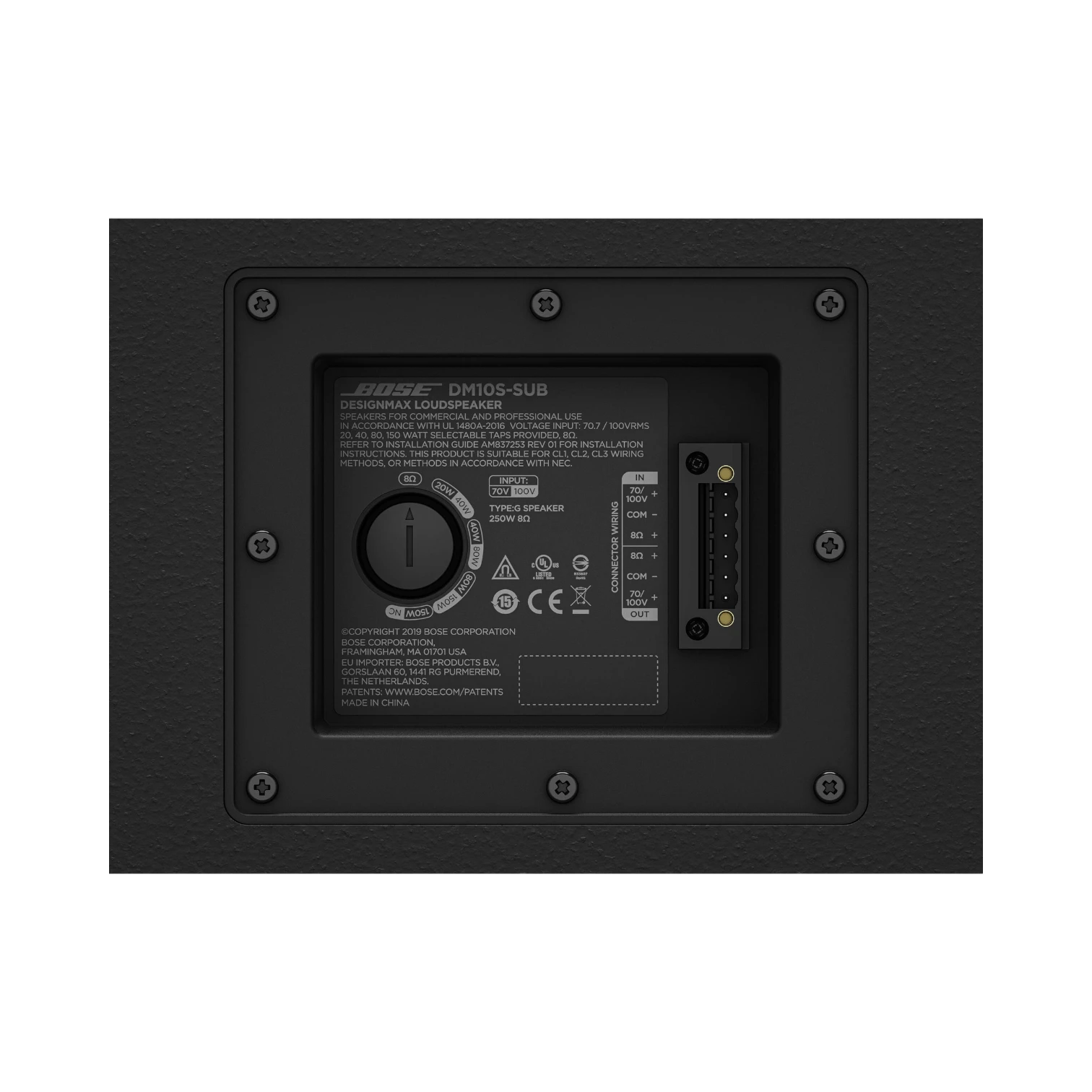 The DesignMax DM10S is a passive subwoofer, requiring an external amplifier to power it. It pairs seamlessly with Bose Professional DSP amplifiers, which provide precise control over audio settings to tailor bass response to the specific environment. This flexibility makes it suitable for integration into a wide range of commercial audio systems where consistent low-frequency performance is essential.
